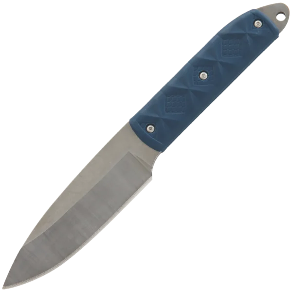KA-BAR teamed up with Mike Snody, custom knife maker, to produce factory knives that honor the looks and finish of Mike's custom-made pieces. The Boss is a classic Snody knife, easily recognizable to his fans. The factory version has been decked out with premium S35VN steel and lots of accessories. Each knife comes with two sets of textured handles–a blue "Reptile" version is mounted to the knives and a purple "Dolla Holla" version highlights Snody's stylized "S" logo and is included in the package. We've also thrown in a custom-designed Schmuckatelli Co. bead, coordinating 550 cord, and a semi-custom high-quality leather sheath made by JRE.