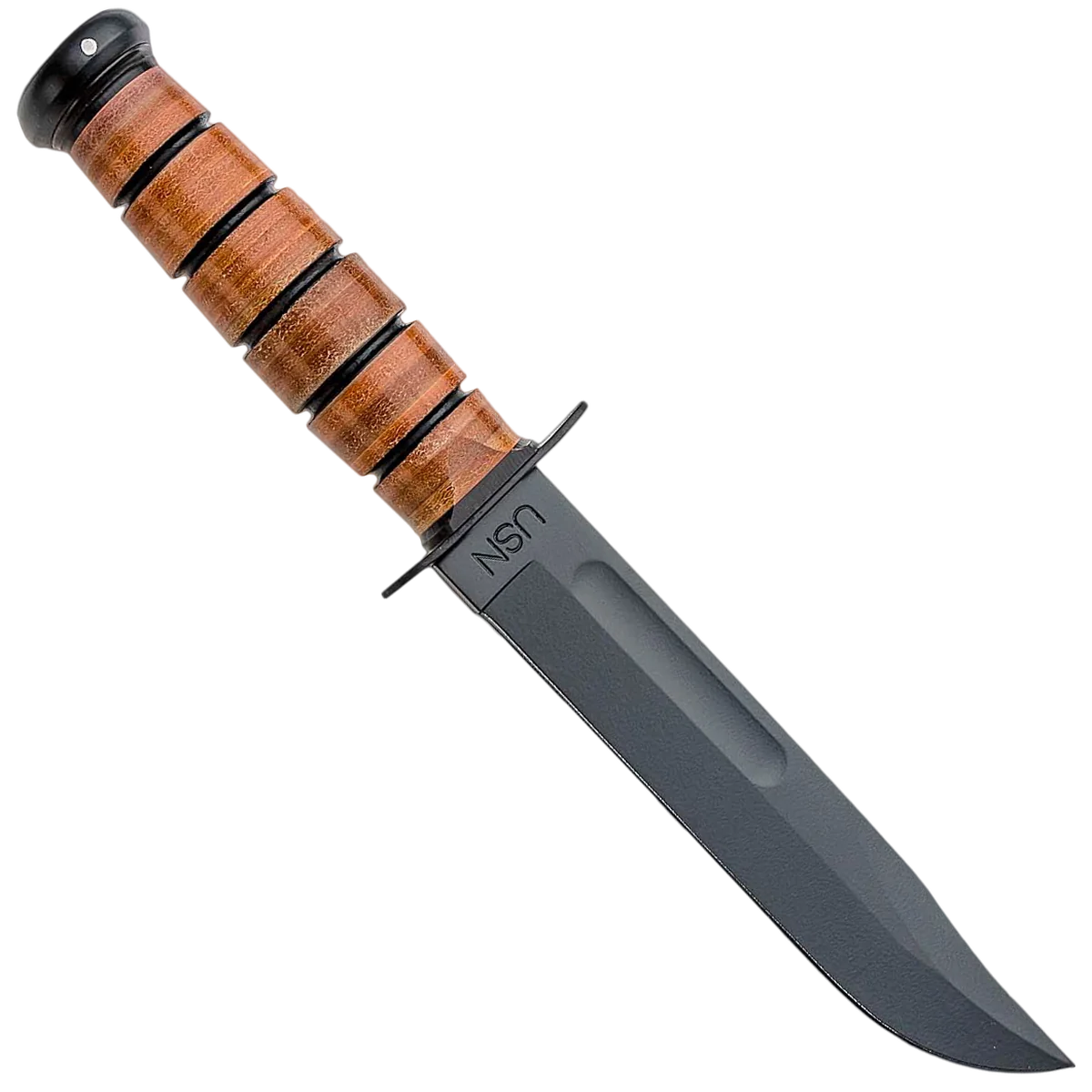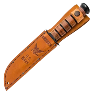The KA-BAR 9131 features a 7" clip point blade made of 1095 Cro-Van high carbon steel, and U.S Navy tang stamp. The blade has a black finish, a fuller and a laser engraved Operation Iraqi Freedom logo. The stacked leather washer handle has a powdered metal butt cap and a carbon steel guard. The butt cap and the guard are both epoxy powder coated. Item includes an embossed U.S Navy brown leather sheath for secure carry. The KA-BAR USN Iraqi Freedom Knife has an overall length of 11 7/8", and weighs 11.2 ounces. Made in the USA.