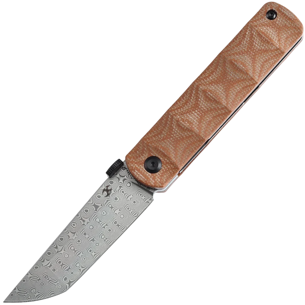 The Kansept BTF (Basic Tanto Folder) was inspired by traditional Japanese kwaiken knives, seen in the contouring of the handle made to mimic bamboo. The undulating surface of the handle improves anti-slip properties and enhances safety and comfort when in use; this ergonomic design conforms to the natural curves of the palm of the hand, disperses pressure during cutting tasks, reduces hand fatigue, and provides a more comfortable and natural grip. The simple design of the liner lock keeps the tool lightweight while providing a reliable locking function, suitable for daily carrying and use. Additionally, the angled pocket clip design facilitates quick and efficient access, allowing users to retrieve the folding knife when needed effortlessly.