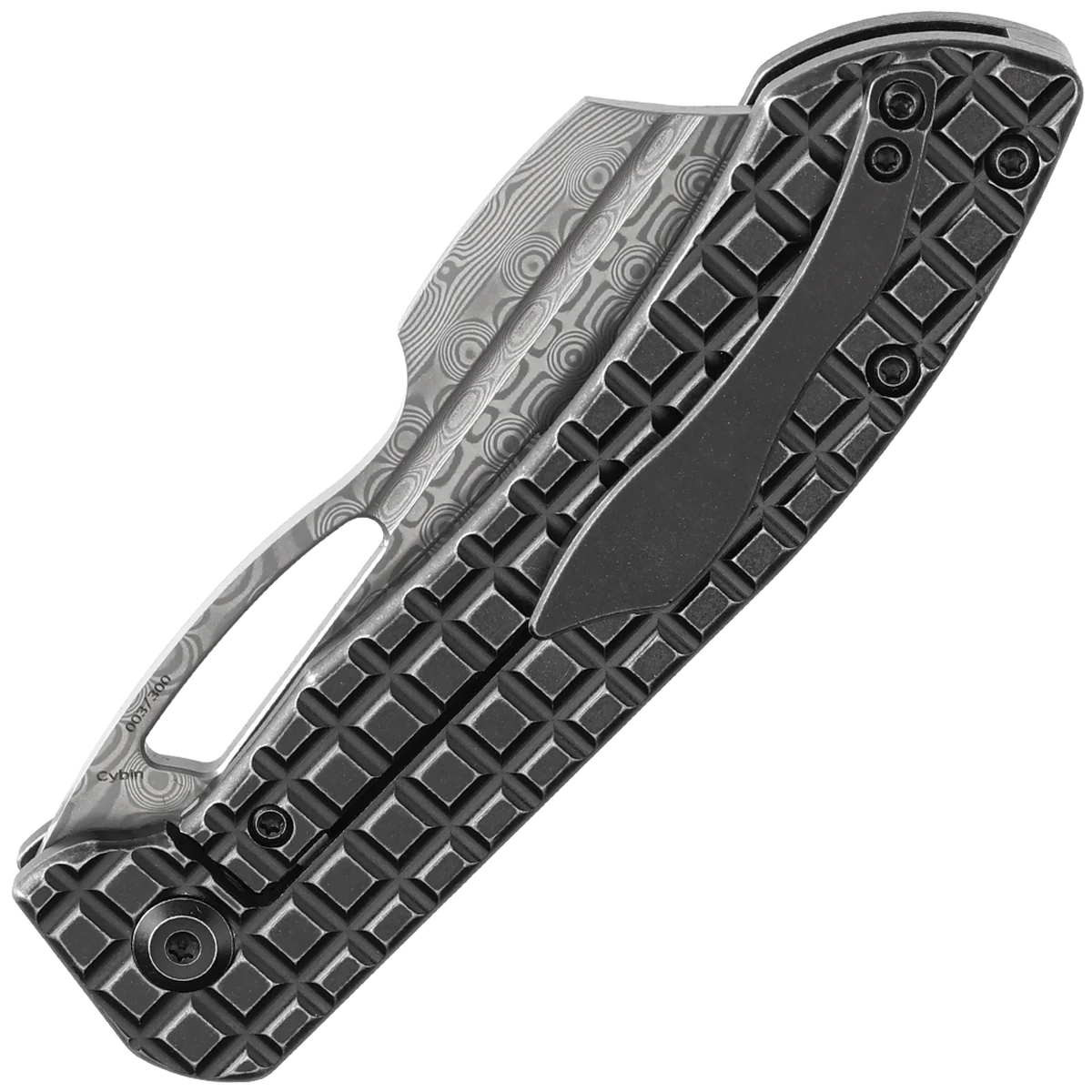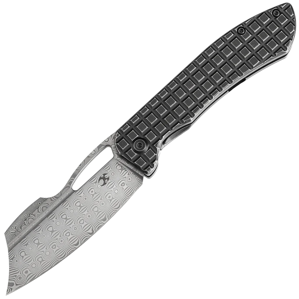 The Kansept Cybin is a distinctive pocket knife with some serious style. The 3.29" blade is a modified cleaver with a sharp point and a dip on the spine that offers a comfortable position for your thumb. The Blackwash Titanium handle is well-designed, offering a firm, comfortable grip with easy access to the frame lock.