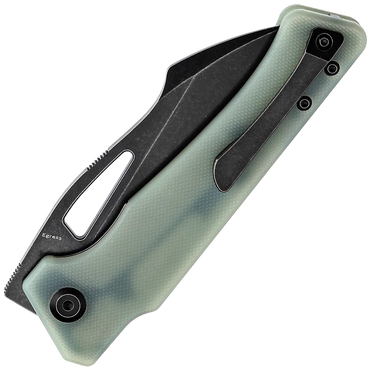 The Egress is a budget-friendly product released by Kansept, and a good choice for all scenarios where you need to use a knife. With the CPM-S35VN, a quality steel, it does an excellent job of cutting in outdoor and urban environments alike. It has a wide blade, a straight edge and a slim handle. The Ball Bearing system provides a smooth opening and the liner lock firmly secures the blade in the open position. This model features a black stonewashed blade finish with attractive jade G-10 handles. With both a large blade cutout and a generous front flipper tab, you can open this blade in many different ways, so you can always use your preferred opening method.
