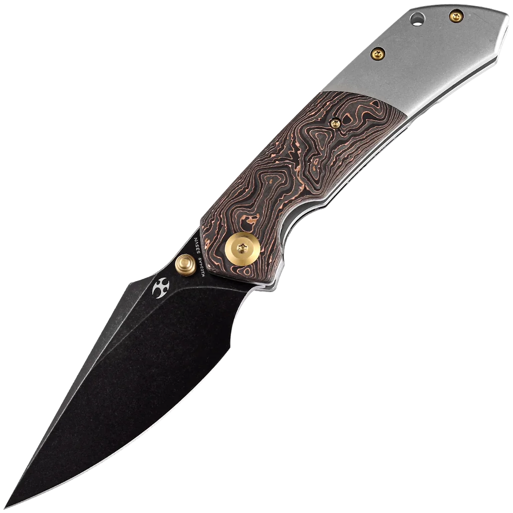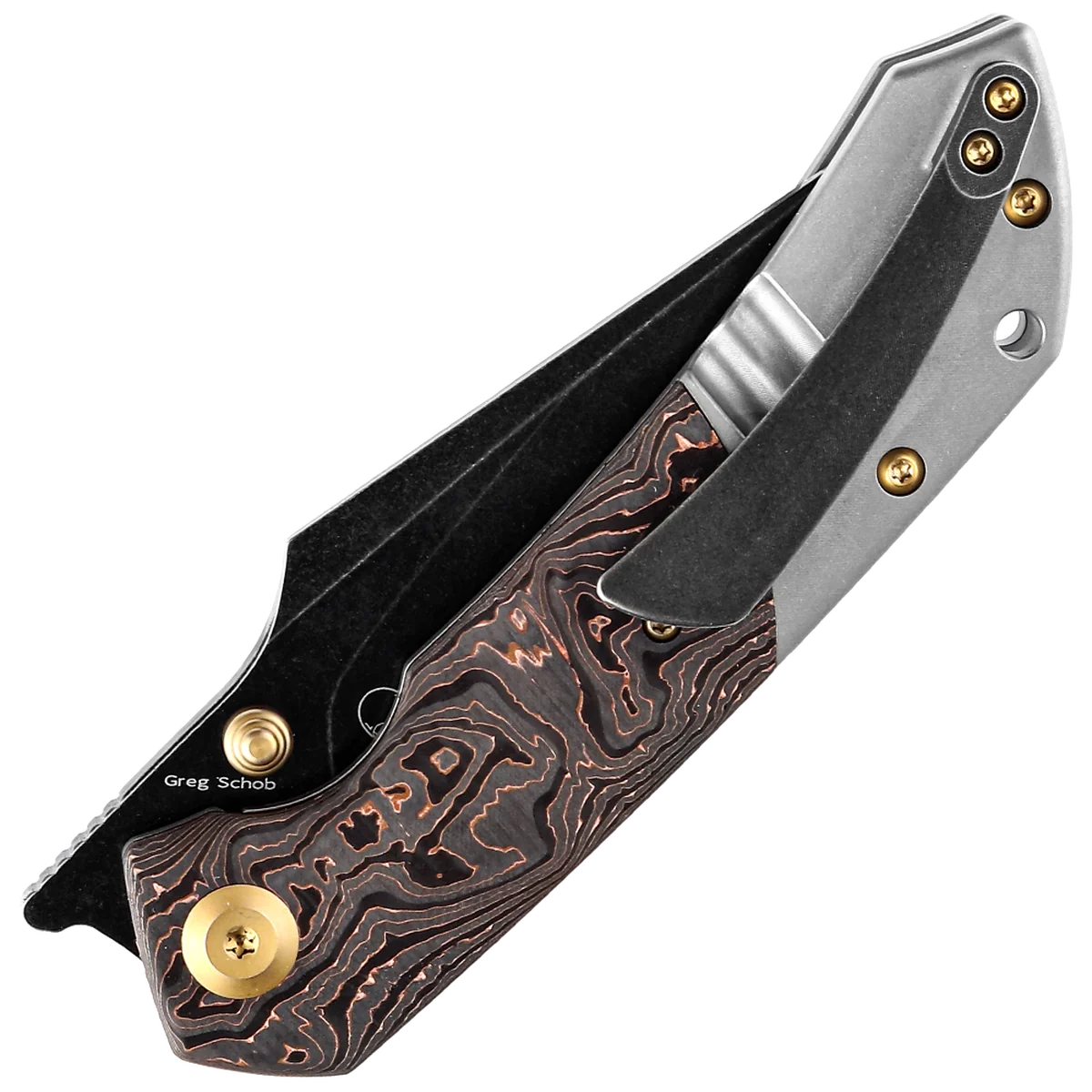 Fenrir is a functional EDC knife with bold aesthetic lines.The large belly and sharp point make it versatile for every day use, whether in urban or outdoor environments. Multiple deployment options and versatile ergonomics make it a great knife to handle. The Fenrir is crafted with high-quality materials like CPM-S35VN steel for the blade, renowned for its edge retention and corrosion resistance, along with a combination of carbon fiber and titanium for the handle, ensuring durability and lightweight performance and giving it a sleek and stylish appearance. Designed by Greg Schob, the Fenrir knife is engineered with user comfort in mind, with an ergonomic handle design that fits naturally in the hand, reducing fatigue during extended use.