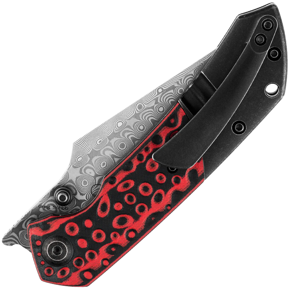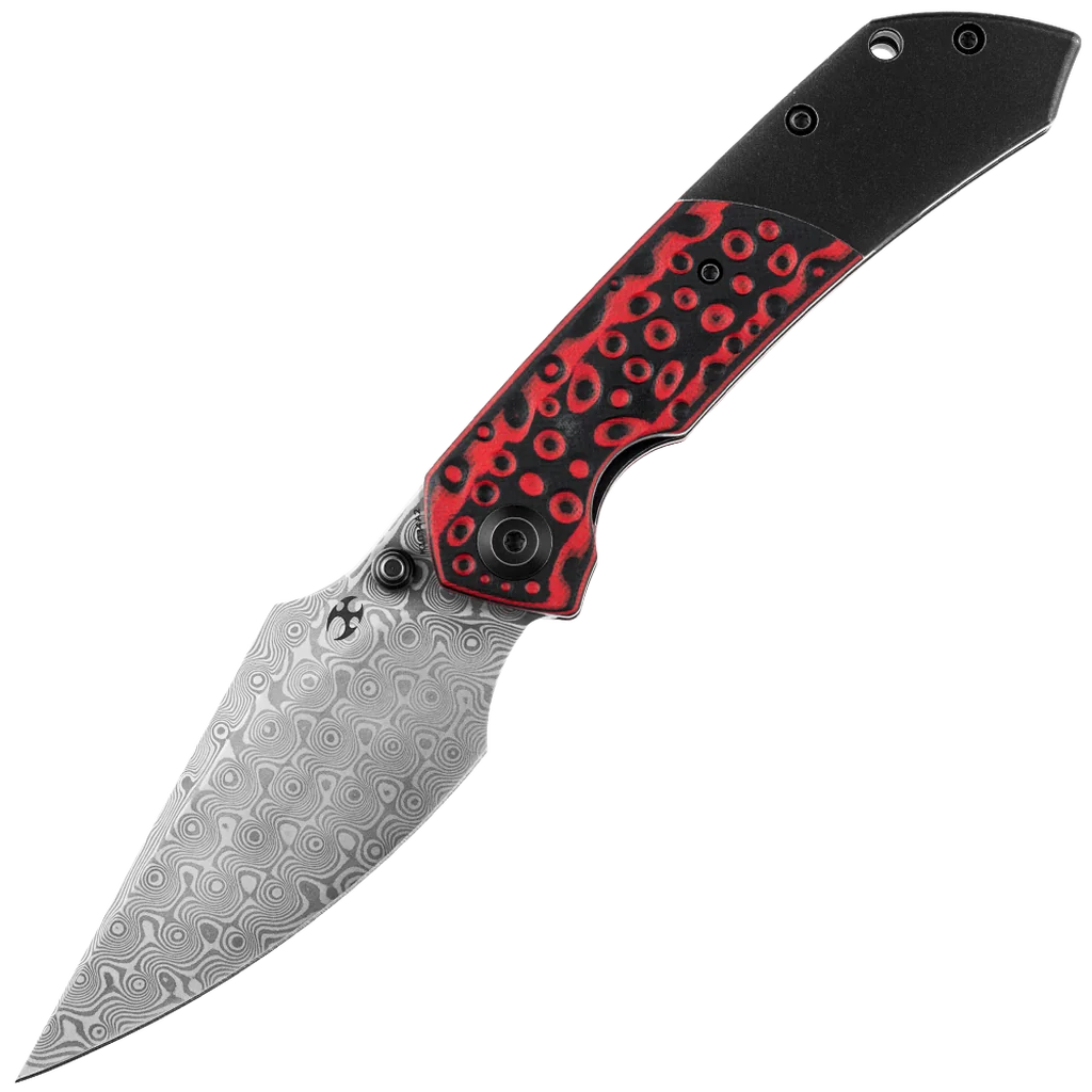 Fenrir is a functional EDC knife with bold aesthetic lines.The large belly and sharp point make it versatile for every day use, whether in urban or outdoor environments. Multiple deployment options and versatile ergonomics make it a great knife to handle. The Fenrir is crafted with high-quality materials like Damascus steel for the blade, renowned for its edge retention and corrosion resistance, along with a combination of G-10 and titanium for the handle, ensuring durability and lightweight performance and giving it a sleek and stylish appearance. Designed by Greg Schob, the Fenrir knife is engineered with user comfort in mind, with an ergonomic handle design that fits naturally in the hand, reducing fatigue during extended use.