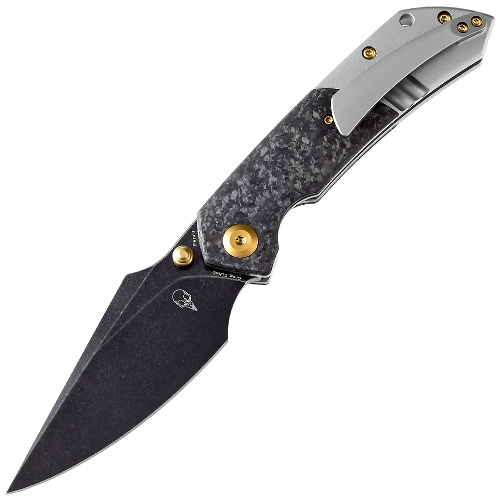 Fenrir is a functional EDC knife with bold aesthetic lines.The large belly and sharp point make it versatile for every day use, whether in urban or outdoor environments. Multiple deployment options and versatile ergonomics make it a great knife to handle. The Fenrir is crafted with high-quality materials like CPM-S35VN steel for the blade, renowned for its edge retention and corrosion resistance, along with a combination of carbon fiber and titanium for the handle, ensuring durability and lightweight performance and giving it a sleek and stylish appearance. Designed by Greg Schob, the Fenrir knife is engineered with user comfort in mind, with an ergonomic handle design that fits naturally in the hand, reducing fatigue during extended use.
