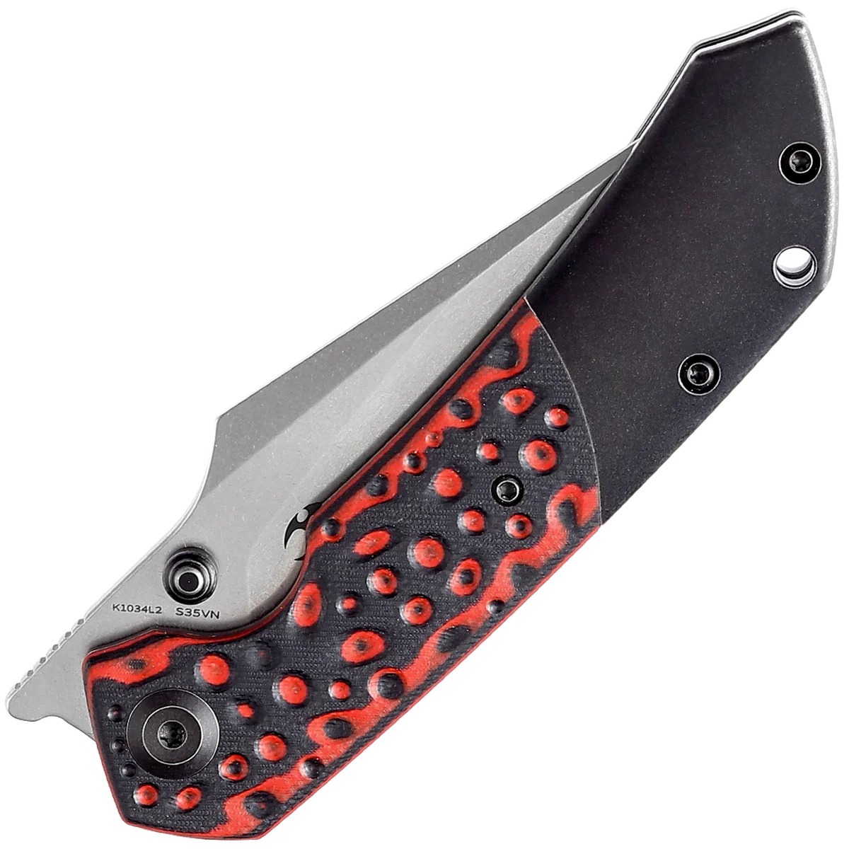 Fenrir is a functional EDC knife with bold aesthetic lines.The large belly and sharp point make it versatile for every day use, whether in urban or outdoor environments. Multiple deployment options and versatile ergonomics make it a great knife to handle. Crafted with a 3.48'' CPM-S35VN blade, known for its exceptional edge retention and corrosion resistance, the Fenrir guarantees durability and longevity. The handle features a blend of black and red G10 combined with titanium, providing both lightweight and sturdy construction. The ergonomic design ensures a comfortable grip for extended use. Whether for everyday carry or outdoor adventures, the Fenrir's versatile design makes it suitable for a wide range of tasks and environments.