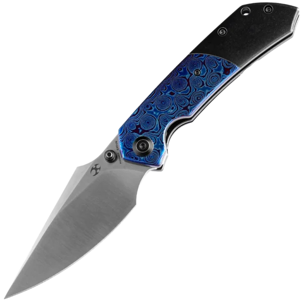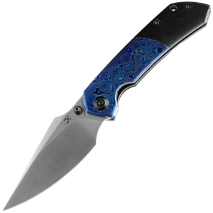 Fenrir is a functional EDC knife with bold aesthetic lines.The large belly and sharp point make it versatile for every day use, whether in urban or outdoor environments. Multiple deployment options and versatile ergonomics make it a great knife to handle. The Fenrir is crafted with high-quality materials like CPM-S35VN steel for the blade, renowned for its edge retention and corrosion resistance, along with a combination of Timascus and titanium for the handle, ensuring durability and lightweight performance and giving it a sleek and stylish appearance. Designed by Greg Schob, the Fenrir knife is engineered with user comfort in mind, with an ergonomic handle design that fits naturally in the hand, reducing fatigue during extended use.