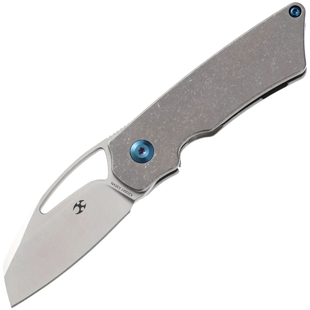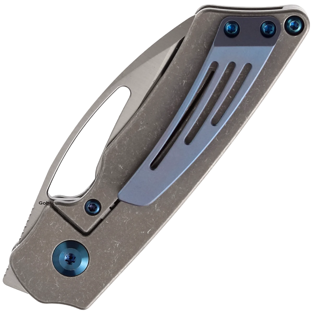 With over built knives being so popular, designer Marshall Noble wanted to make the biggest little knife he could. Little knives often do not handle large tasks well, so he made a knife with a broad blade for these large tasks, while staying compact. The Kansept Goblin has an ultra dependable stonewashed CPM-S35VN blade steel which provides a tough blade with excellent edge retention. The handle is compact and ergonomic bronze anodized titanium for a smooth gripping surface that is comfortable in the pocket or hand. A ceramic ball bearing pivot ensures smooth opening.
