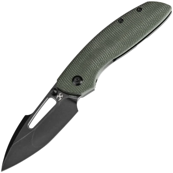 The Link was designed to have a sharp sleek look while retaining the key features of an EDC blade: excellent ergonomics and fantastic fidgetability. Ergonomics are provided by the neutral handle shape and forward choil, while fidget factor comes from the prominent front-flipper combined with the broad opening hole and thumbstud. The compound grind and subtly tanto-shaped harpoon blade offer practical utility with a keen point and thin edge. The 3" blade is crafted from Crucible CPM 20CV steel, while the dual-material constructed handle offers a range of high-end materials. This model features a black stonewashed CPM-20CV blade, a rugged green Micarta front scale, and a black titanium back scale and pocket clip.