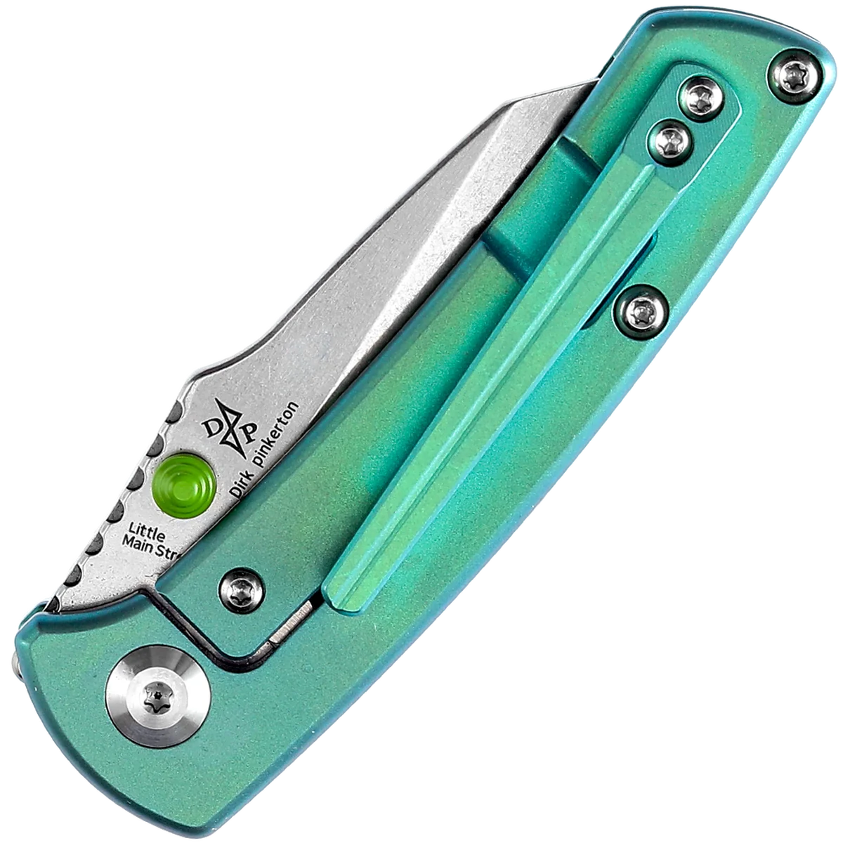 The Little Main Street is a knife designed to go almost anywhere and still be an effective tool. The Wharncliffe blade is the most versatile blade shape, especially for a small knife. This compact folding knife features a 2.26" stonewashed CPM-S35VN blade and a green Anodized Titanium handle for a smooth gripping surface that is comfortable in the pocket or hand. Honed by 18 years in the Security Industry, Dirk is famed for his effective, no-nonsense, and purpose-driven models. This dynamic approach to knife designs fuels the growing demand for Dirk's creations.