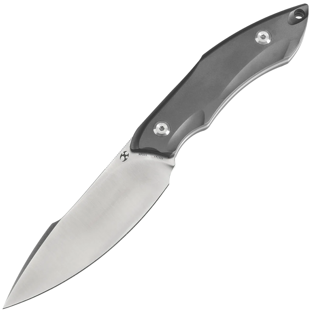 The Luccio is the ultimate all-in-one knife, perfect for camping, backpacking, fishing, hiking, and survival tasks. The CPM S35VN drop point blade features a full flat grind, a prominent belly, and a pointed tip, making it well-suited for a variety of practical uses. The knife features a titanium handle with multiple chamfered edges, providing a seamless fit in the hand. The ergonomic design ensures a comfortable grip, making it feel natural and secure during use. This everyday carry fixed knife comes with a durable, high-quality kydex sheath designed to securely hold the blade in place, ensuring safe storage and protection.