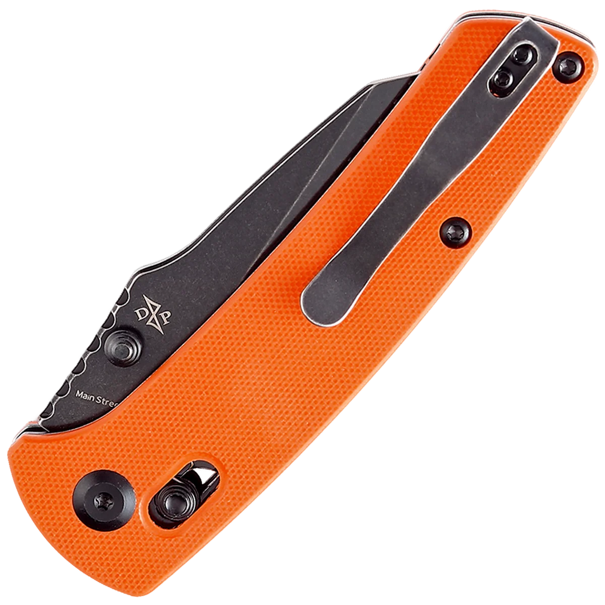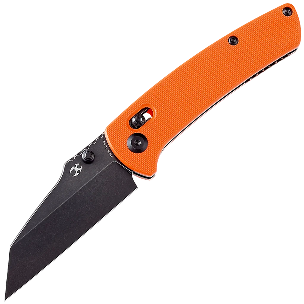 The Kansept Main Street is a great budget-friendly pocket knife designed by Dirk Pinkerton. His designs have a distinctive Wharncliffe-style shape: a blade with a straight edge. This blade shape is suitable for kitchen tasks, opening packages, and other everyday utility tasks. The ergonomic G-10 handle provides a smooth gripping surface that is comfortable in the pocket or hand, and the milled pocket clip is strong and holds the knife securely.