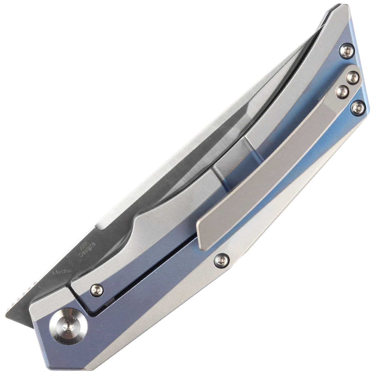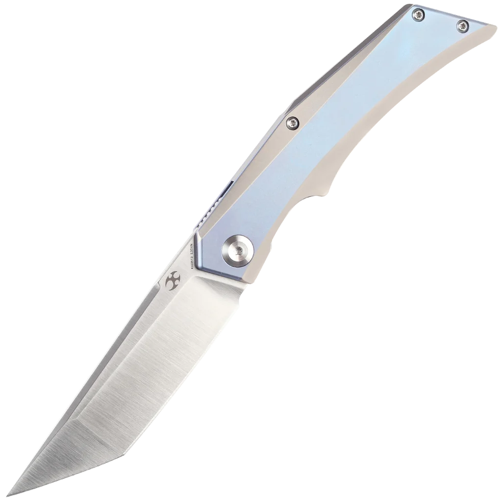 Designer of the Naska, Aurelien, wanted a functional folding knife, a knife that can be taken into any pocket to perform simple tasks as well as more demanding tasks while trying to have a contemporary design that differs from what can usually be seen. He wanted a knife with a shape that allows great versatility in adapting blade shapes, a knife on which you can mount a tanto blade as well as a drop point blade, while respecting the original contemporary spirit of the knife