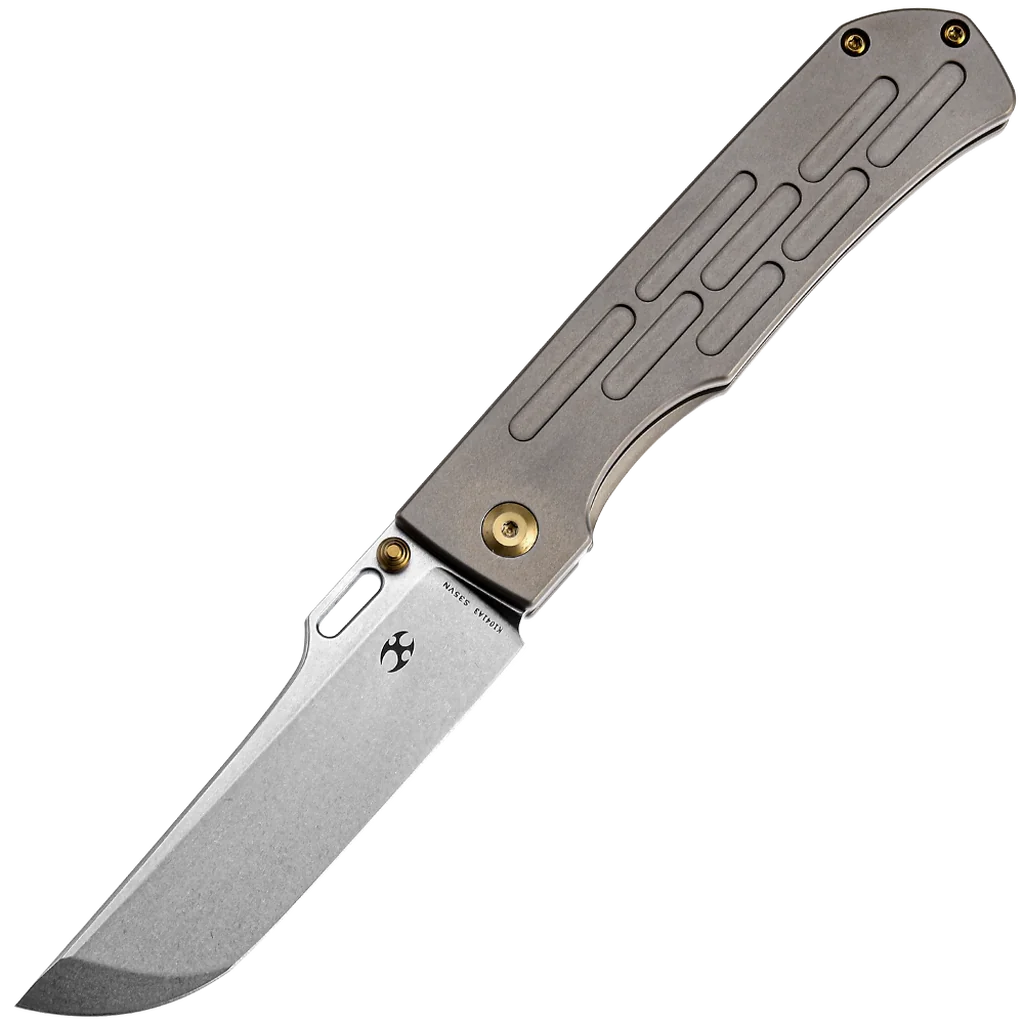 Reedus, a perfectly designed modern folding knife with a strong functional feel. The knife is made of premium steels, allowing the knife to perform everyday cutting tasks with ease. The textured titanium handle provides a more comfortable grip. It is also designed with a deep carry titanium pocket clip, the perfect match for urban living.