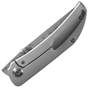 The Tarkin Folding Knife features an ultra-thin 3mm modified tanto blade crafted from premium Damascus steel, offering superior cutting precision and durability. The Damascus steel Kansept use is a premium composite of 9Cr and 440C stainless steels, distinguishing it from lower-quality options. Whether for detailed work or everyday tasks, the thinness of the blade ensures smooth performance, making it perfect for slicing, fine cuts, and tasks requiring precision. The Tarkin is constructed with full titanium contoured scales that offer a smooth, comfortable grip, while maintaining a lightweight yet durable build. The textured titanium backspacer and 3D milled titanium pocket clip enhance its aesthetic appeal and ensure secure, easy carry. Despite its slim profile, it feels sturdy in hand, featuring super thin ergonomics for comfort without sacrificing grip, and a solid framelock for reliable, confident use. The Tarkin offers multiple opening methods, featuring both a Thumb Disc and a Front Flipper for versatile deployment. With caged ceramic ball bearings, the action is incredibly smooth and responsive, ensuring effortless opening every time.