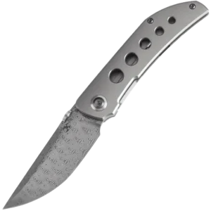 The Tarkin Folding Knife features an ultra-thin 3mm modified tanto blade crafted from premium Damascus steel, offering superior cutting precision and durability. The Damascus steel Kansept use is a premium composite of 9Cr and 440C stainless steels, distinguishing it from lower-quality options. Whether for detailed work or everyday tasks, the thinness of the blade ensures smooth performance, making it perfect for slicing, fine cuts, and tasks requiring precision. The Tarkin is constructed with full titanium contoured scales that offer a smooth, comfortable grip, while maintaining a lightweight yet durable build. The textured titanium backspacer and 3D milled titanium pocket clip enhance its aesthetic appeal and ensure secure, easy carry. Despite its slim profile, it feels sturdy in hand, featuring super thin ergonomics for comfort without sacrificing grip, and a solid framelock for reliable, confident use. The Tarkin offers multiple opening methods, featuring both a Thumb Disc and a Front Flipper for versatile deployment. With caged ceramic ball bearings, the action is incredibly smooth and responsive, ensuring effortless opening every time.