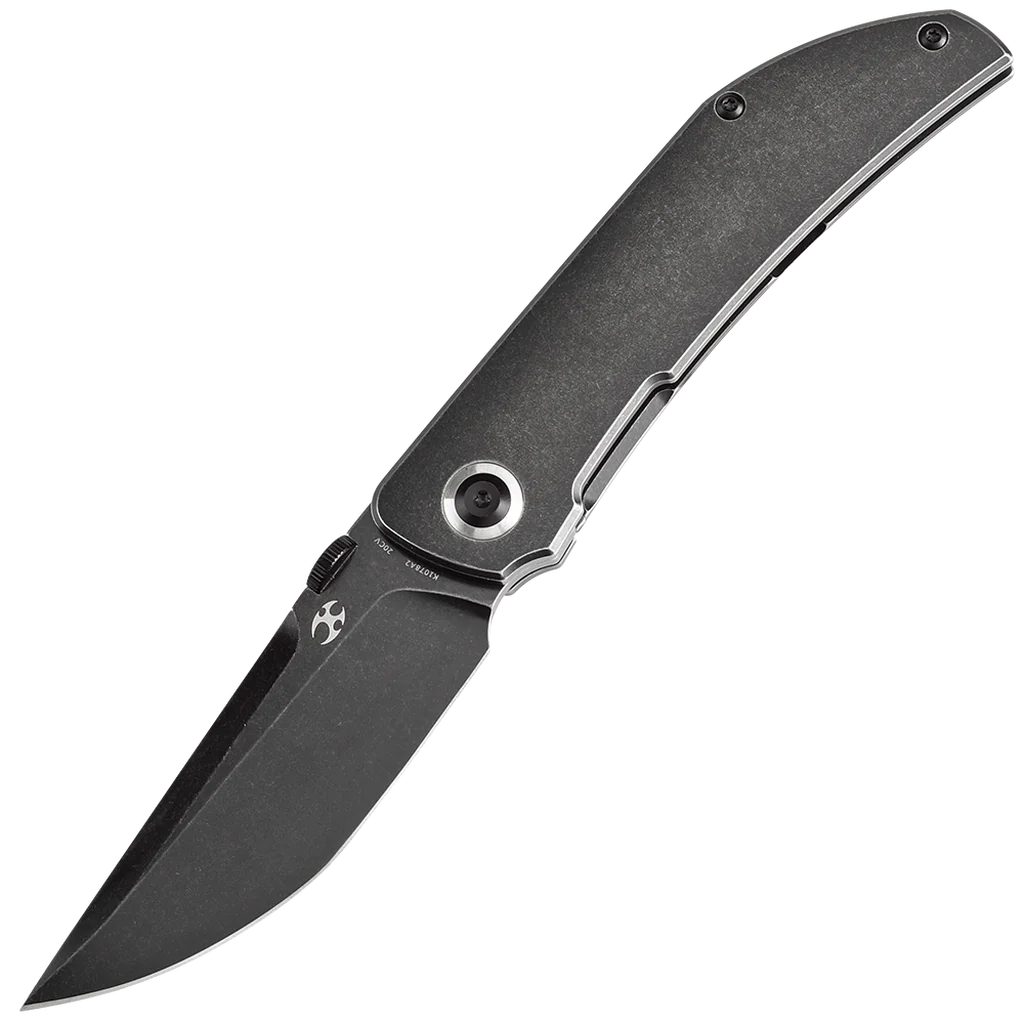 The Tarkin Folding Knife features an ultra-thin 3mm modified tanto blade crafted from CPM 20CV steel, offering superior cutting precision and durability.Whether for detailed work or everyday tasks, the thinness of the blade ensures smooth performance, making it perfect for slicing, fine cuts, and tasks requiring precision. The Tarkin is constructed with full titanium contoured scales that offer a smooth, comfortable grip, while maintaining a lightweight yet durable build. The textured titanium backspacer and 3D milled titanium pocket clip enhance its aesthetic appeal and ensure secure, easy carry. Despite its slim profile, it feels sturdy in hand, featuring super thin ergonomics for comfort without sacrificing grip, and a solid framelock for reliable, confident use. The Tarkin offers multiple opening methods, featuring both a Thumb Disc and a Front Flipper for versatile deployment. With caged ceramic ball bearings, the action is incredibly smooth and responsive, ensuring effortless opening every time.