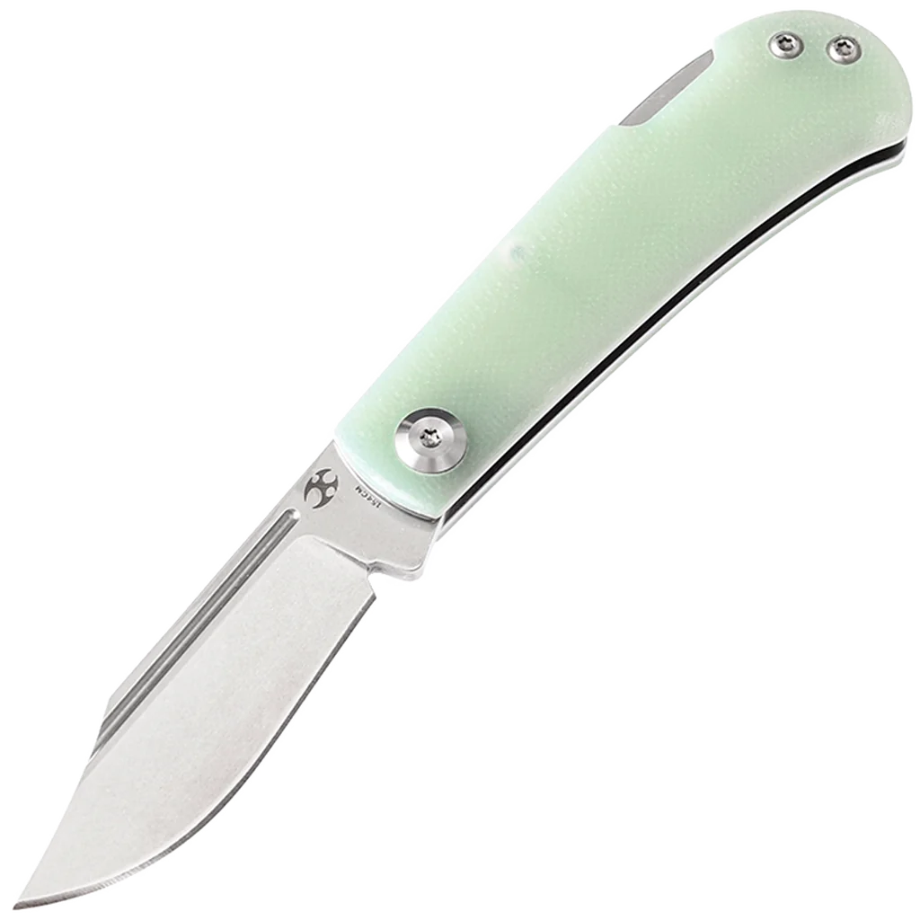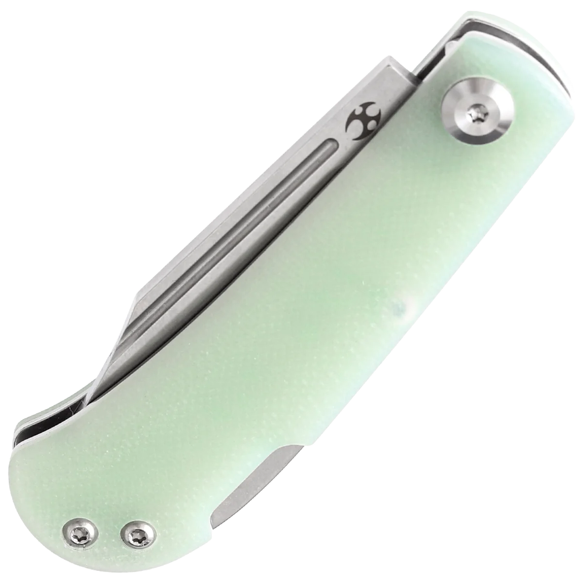 The Kansept Wedge gentleman's knife, designed by Nick Swan, is sleek and sophisticated. It has a lockback mechanism compared to the slip joint design of its sister model, the Bevy. The G-10 handle is ergonomically shaped, with a smooth gripping surface that is comfortable in the pocket or hand. The 2.45" blade is constructed from stonewashed 154CM blade steel, which provides a tough blade with excellent edge retention.