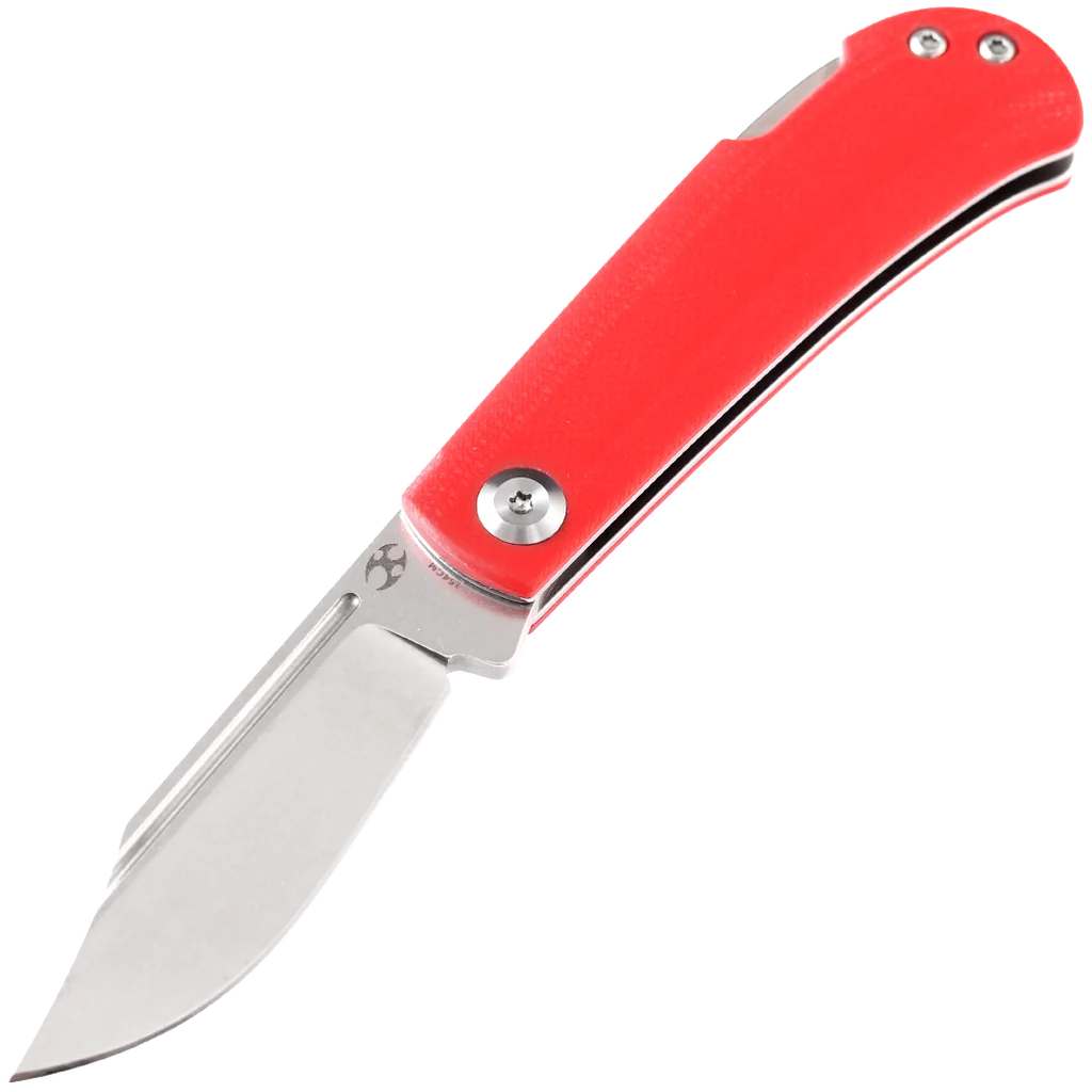 The Kansept Wedge gentleman's knife, designed by Nick Swan, is sleek and sophisticated. It has a lockback mechanism compared to the slip joint design of its sister model, the Bevy. The G-10 handle is ergonomically shaped, with a smooth gripping surface that is comfortable in the pocket or hand. The 2.45" blade is constructed from stonewashed 154CM blade steel, which provides a tough blade with excellent edge retention.