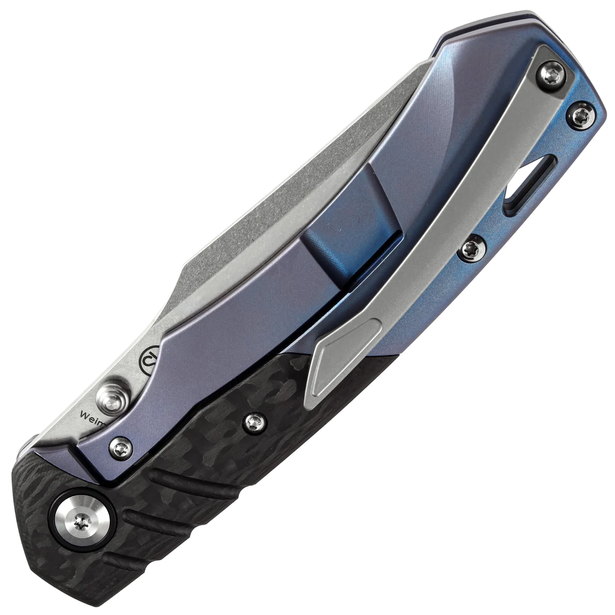 - The Kansept Weim is outfitted with stunning titanium and carbon fiber handles, and a premium sheepsfoot blade.