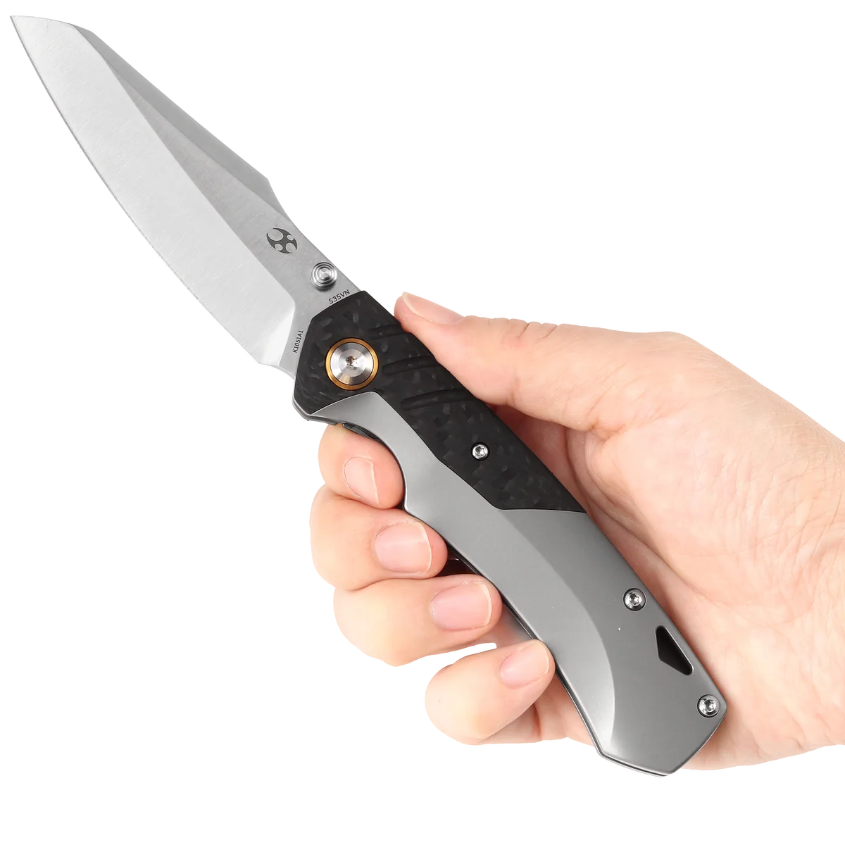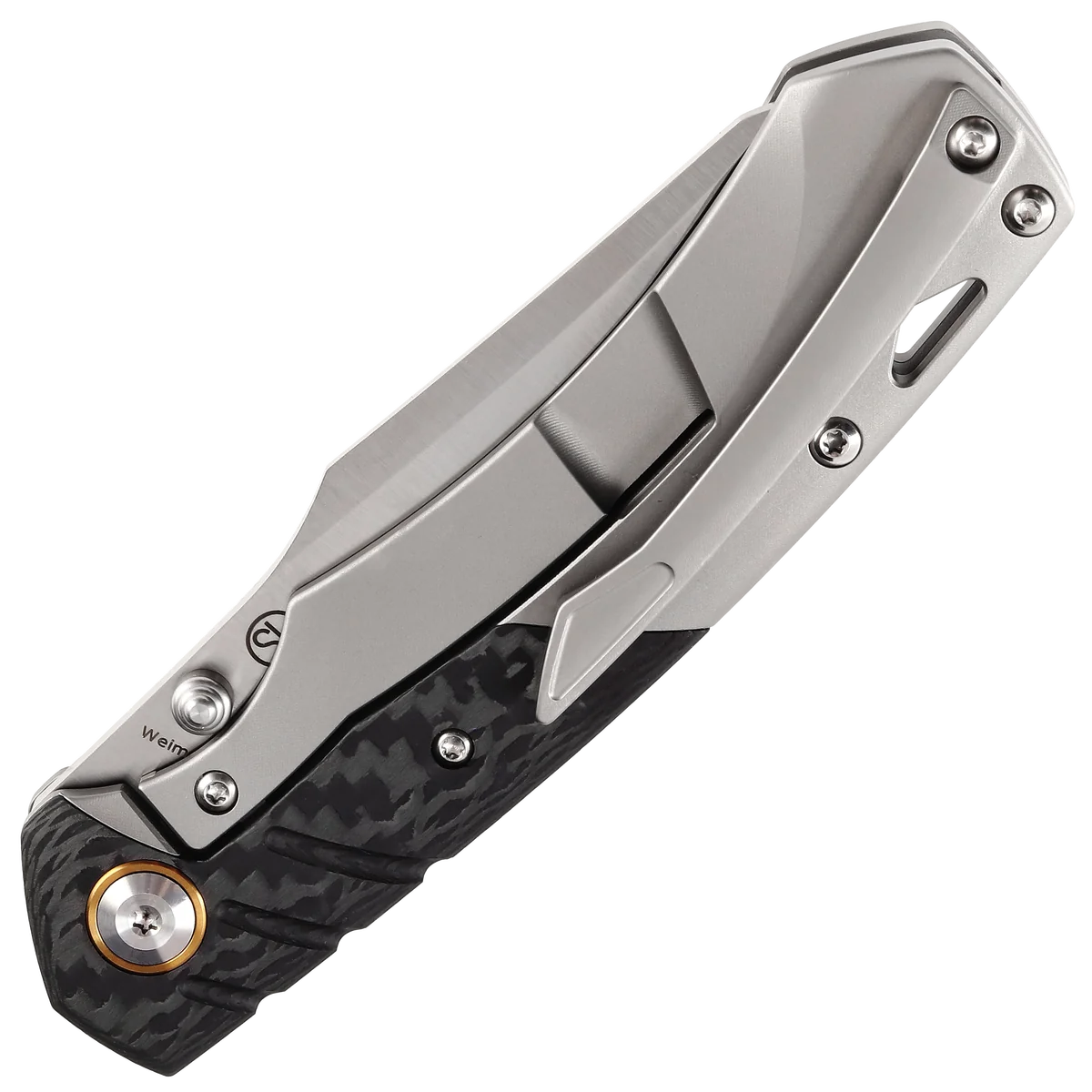 This Weim with a strong sense of design was created by Jonathan Styles. The blade is made from CPM S35VN stainless steel, providing durability and edge retention. It features a quick and easy thumb-stud opening mechanism. A standout design element is the contrasting pairing of titanium and twill carbon fibre on the handle. The 3.28" blade offers strong cutting performance and a balanced handle-to-blade ratio. Jonathan is a knife-maker and designer from the island of Newfoundland, Canada. He has been an outdoorsman his whole life, taking part in outdoor activities such as fishing, hiking and exploring. Nature is his inspiration for his designs, and "functional art" is his knife-making motto.