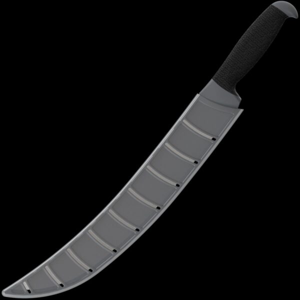 - Kershaw Fixed 12" curved knife made from 420J2 stainless steel, satin finish in a trailing point style. Black GFN handles with a rubber overmold and K-Texture to provide excellent grip in all conditions! Comes with included plastic sheath/blade protector.