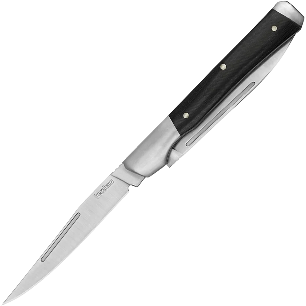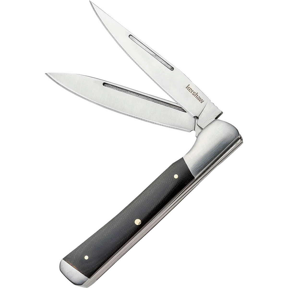 Tackle a multitude of work projects with the two-bladed Kershaw Allegory Folding Knife. Inspired by traditional doctor's knives, the Allegory includes a clip point and spear point blade for everyday tasks and detail cutting. Its polished micarta handle feels smooth in the hand and is pleasing to the eye. Steel bolsters and liners help add a solid feel to this highly capable slipjoint. In fact, the Allegory is solid all around – a worthy piece for any Kershaw collection!