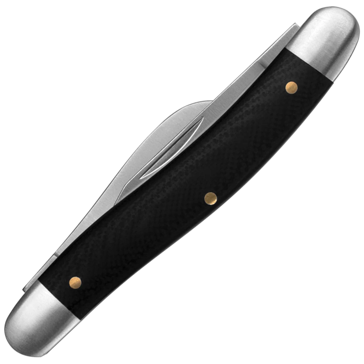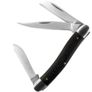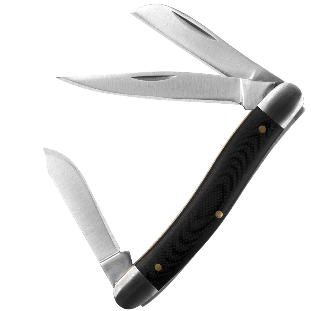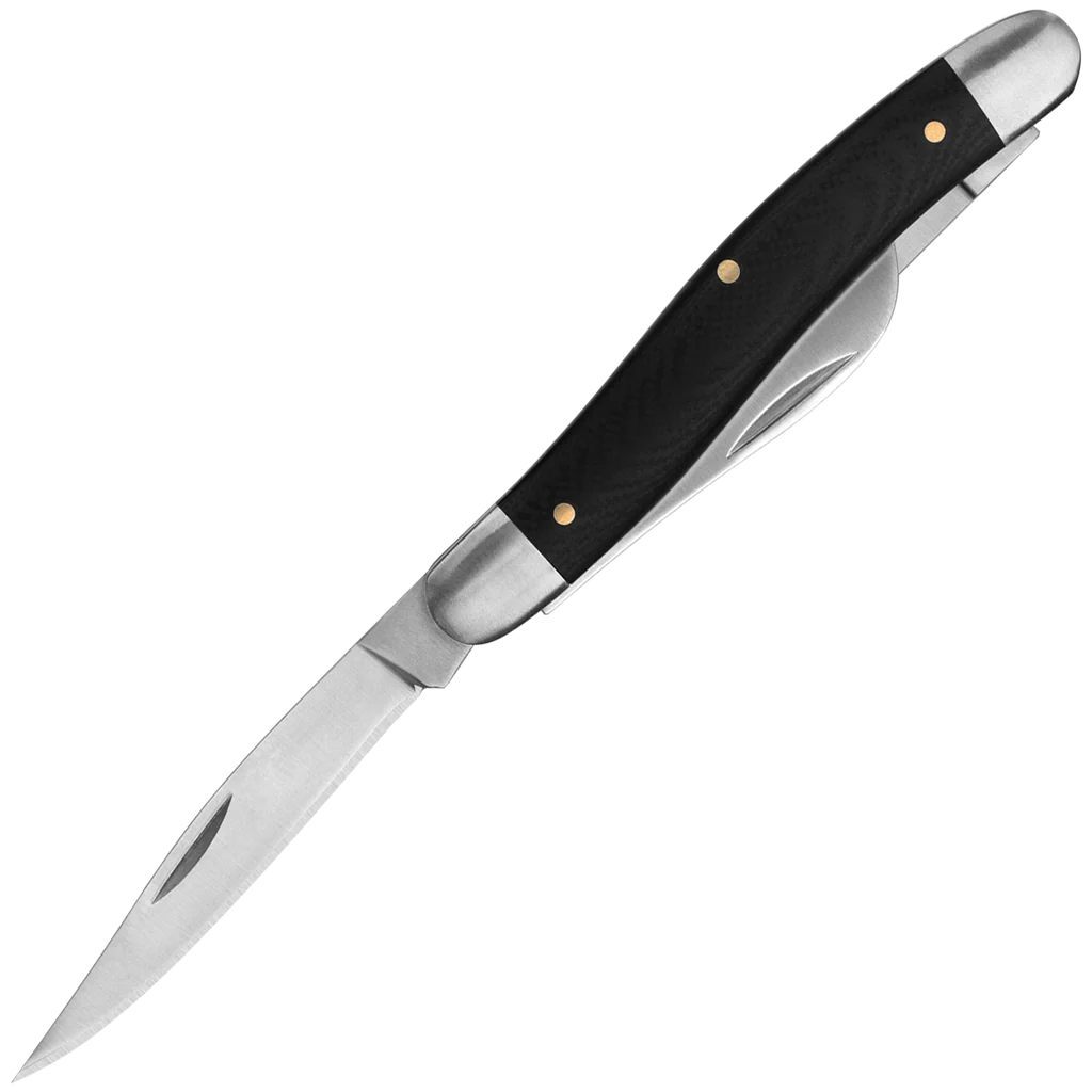 - Folding knife made from 7Cr17MoV stainless steel with a satin finished in a clip point, wharncliffe and spey point style. Black polished G10 handles with stainless steel bolsters. Uses a slip joint mechanism.