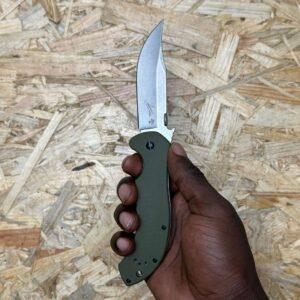 The popular Kershaw–Emerson series is growing. The newest addition, the CQC-10K, is based on the Emerson Appalachian. Originally designed as a hunting knife, it's equally adept for survival, camping, bushcrafting—or for just about any outdoor activity. The CQC-10K features a bowie-style blade of 8Cr13MoV stainless steel with a stonewashed finish. It holds an edge well, and then resharpens easily when out in the field. The handle has a deep curve, designed to fit the palm and reduce hand fatigue during time-consuming tasks. For a secure-grip, the CQC-10K has a G10 front scale with a stainless steel back and sturdy frame lock. Of course, it's also equipped with the Emerson “wave shaped opening feature” so that the folder can be opened as it is withdrawn from the pocket. Or use the thumb disk for simple, manual opening. A reversible pocketclip enables left- or right-handed carry.