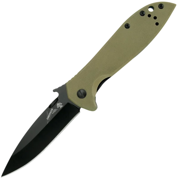 Kershaw Knives and Emerson Knives have joined forces on a series of knives that combine the precision engineering of Kershaw with Emerson's uncompromising functional design. The CQC-4K features a drop-point blade for multi-purpose cutting capability. Black-oxide coating protects the blade and makes it non-reflective, too. A textured G-10 front scale in coyote brown offers a secure grip. The handle back is stainless steel with black-oxide coating. For a safe and solid blade lock up, the CQC-4K has a frame lock. The CQC-4K is a manual opener using either the thumb disk or the patented Emerson "wave shaped feature." This opening feature enables the knife to be opened as it is removed from the pocket. By the time the knife has been fully withdrawn from the pocket, the blade is deployed and ready for use. A small wave-shaped tab on the top of the blade is built to catch on the pocket seam, opening the knife as it comes out of the pocket. This instant-open feature is a favorite among military, rescue, and law enforcement knife users. The pocketclip is reversible for left- or right-handed carry.