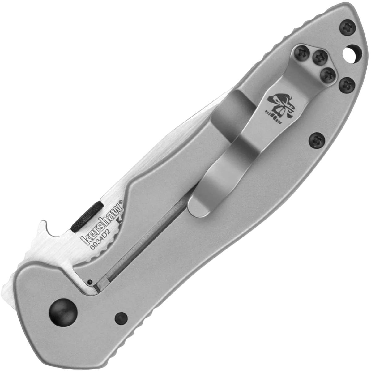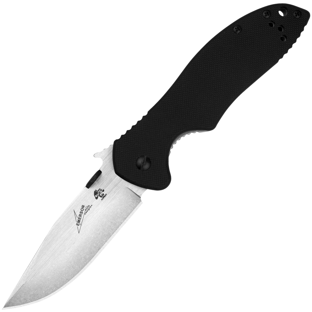 Kershaw Knives and Emerson Knives have joined forces on a series of knives that combine the precision engineering of Kershaw with Emerson's uncompromising functional design. The CQC-6K features a modified clip-point blade for versatile cutting ability. The blade has two finishes: a satin finish on the upper and a stonewashed finish on the grind. The handle's front scale of textured G-10 offers a secure grip and the handle's stainless steel back has a solid frame lock. The CQC-6K is a manual opener using either the thumb disk or the patented Emerson "wave shaped feature." This opening feature enables the knife to be opened as it is removed from the pocket. By the time the knife has been fully withdrawn from the pocket, the blade is deployed and ready for use. A small wave-shaped tab on the top of the blade is built to catch on the pocket seam, opening the knife as it comes out of the pocket. This instant-open feature is a favorite among military, rescue, and law enforcement knife users. The pocketclip is reversible for left- or right-handed carry.