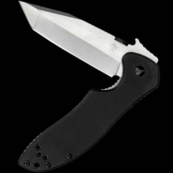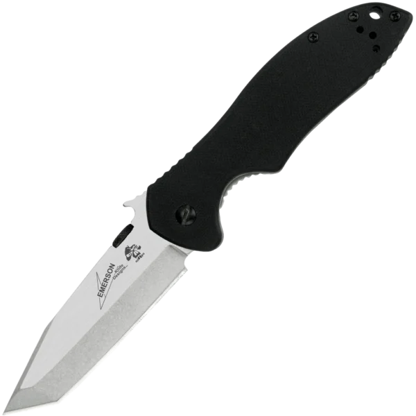 Kershaw Knives and Emerson Knives have joined forces on a series of knives that combine the precision engineering of Kershaw with Emerson's uncompromising functional design. The CQC-7K features a modified tanto blade for both slicing and punching capability. The blade has two finishes: a satin finish on the upper and a stonewashed finish on the grind. The handle's front scale of textured G-10 offers a secure grip and the handle's stainless steel back has a solid frame lock. The CQC-7K is a manual opener using either the thumb disk or the patented Emerson "wave shaped feature." This opening feature enables the knife to be opened as it is removed from the pocket. By the time the knife has been fully withdrawn from the pocket, the blade is deployed and ready for use. A small wave-shaped tab on the top of the blade is built to catch on the pocket seam, opening the knife as it comes out of the pocket. This instant-open feature is a favorite among military, rescue, and law enforcement knife users. The pocketclip is reversible for left- or right-handed carry.
