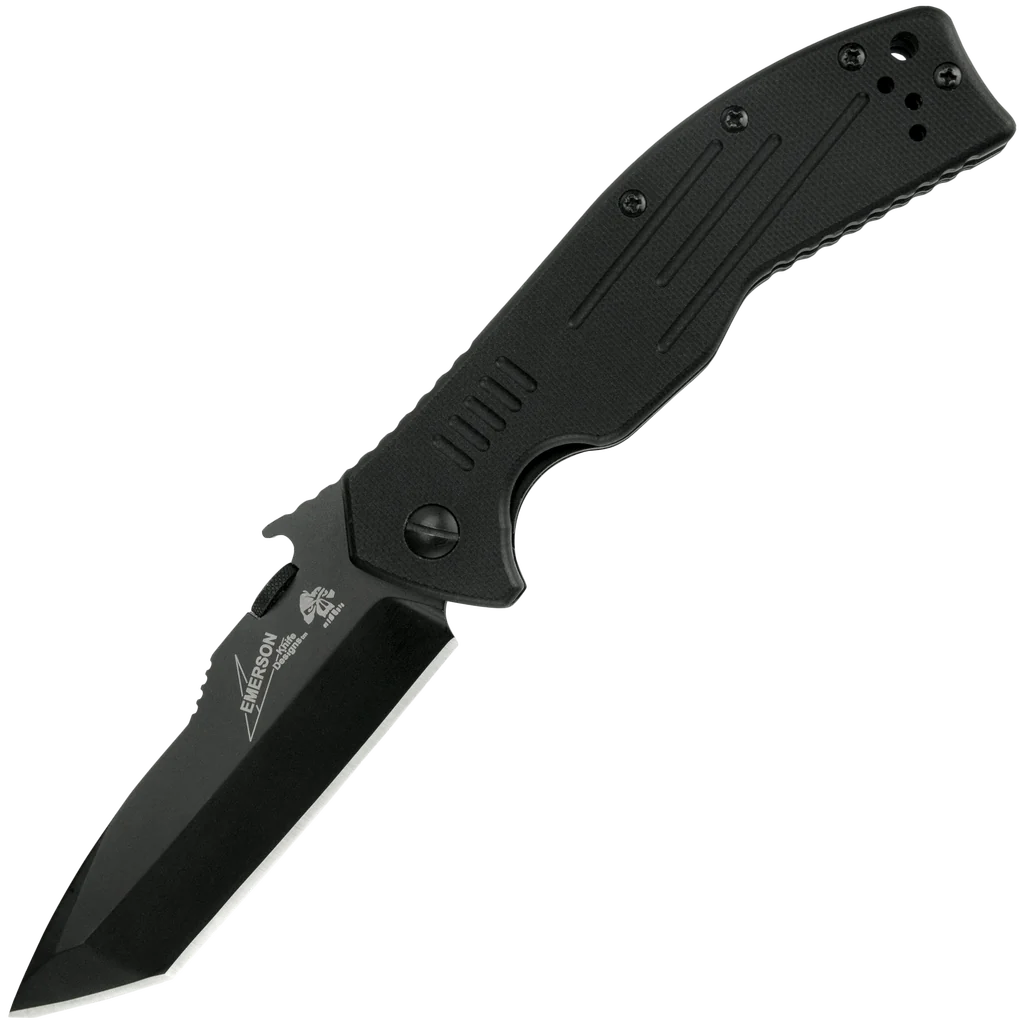 Kershaw Knives and Emerson Knives have joined forces on a series of knives that combine the precision engineering of Kershaw with Emerson's uncompromising functional design. The CQC-8K features a single-bevel tanto blade—which means it is razor sharp. Black-oxide coating protects the blade and makes it non-reflective, too. G-10 handles provide secure grip and a locking liner means safe and solid blade lock up. The CQC-8K is a manual opener using either the thumb disk or the patented Emerson "wave shaped feature." This opening feature enables the knife to be opened as it is removed from the pocket. By the time the knife has been fully withdrawn from the pocket, the blade is deployed and ready for use. A small wave-shaped tab on the top of the blade is built to catch on the pocket seam, opening the knife as it comes out of the pocket. This instant-open feature is a favorite among military, rescue, and law enforcement knife users. The pocketclip is reversible for left- or right-handed carry.