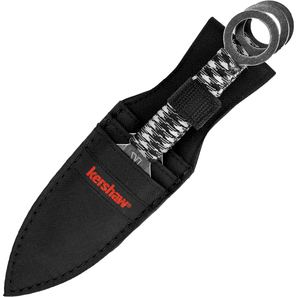 We have to admit it; throwing knives is fun. But throwing just any knife is dangerous—and not very smart. To throw knives, knives specially designed for throwing are required. That’s why Kershaw made the Ion Throwing Knife Set. The three knives in the set are designed to have the correct weight and balance for target throwing. Kershaw’s Ion knives are double-edged, spear-point blades. We made these full-tang knives from sturdy, high-chromium stainless steel and wrapped the handles in durable, sure-grip paracord. The extra-wide ring at the end adds balance, offers a great place to attach a lanyard, and makes it easy to remove the knives from the sheath—or from the target. All three knives fit neatly in the nylon carrying and storage sheath, which makes it easy to take them out to the throwing range.