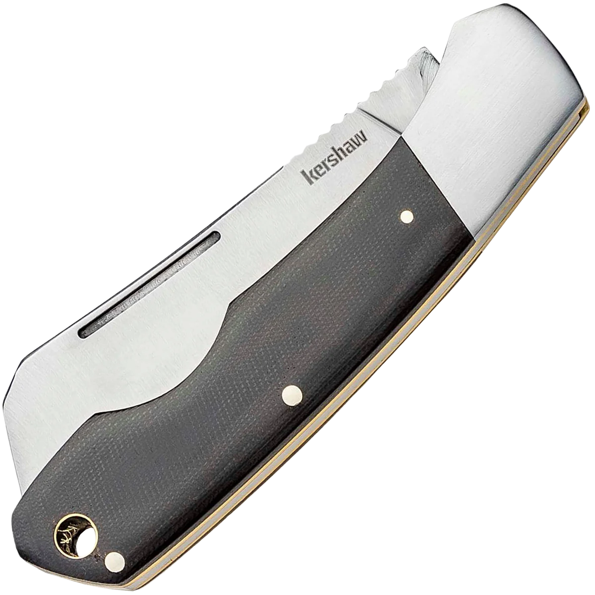 Kershaws traditional non-locking, slipjoint design is turning heads – made fresh and exciting with its cleaver blade. This kitchen-inspired slicer can take on work tasks easily and efficiently. The polished micarta handle helps turn the Parley into a standout showoff piece with plenty of durability. The handle also features steel bolsters with brass liners. Finally, a lanyard hole offers an alternate carry, complete with a handsome brass trim ring. With its highly efficient cleaver blade, the Parley will be a Kershaw to carry every day.