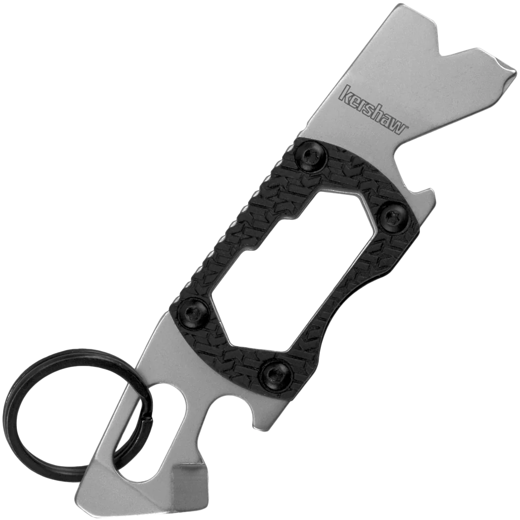 Keychains just got even handier with the PT-2 keychain tool. It offers eight handy functions in a very compact space. The PT-2 (Pry Tool-2) comes in at less than an ounce as well and offers a bottle opener and cap lifter, a pry bar, two screwdriver tips, a wire scraper, and 3 sizes of hex drivers. And because it's a real tool, Kershaw made it out of quality 8Cr13MoV stainless steel then gave it an attractive bead-blasted finish. For good grip, the PT-1 tool features a handle overlay in glass-filled nylon with the K-Texture pattern. Just use the lanyard hole to attach to your keychain.