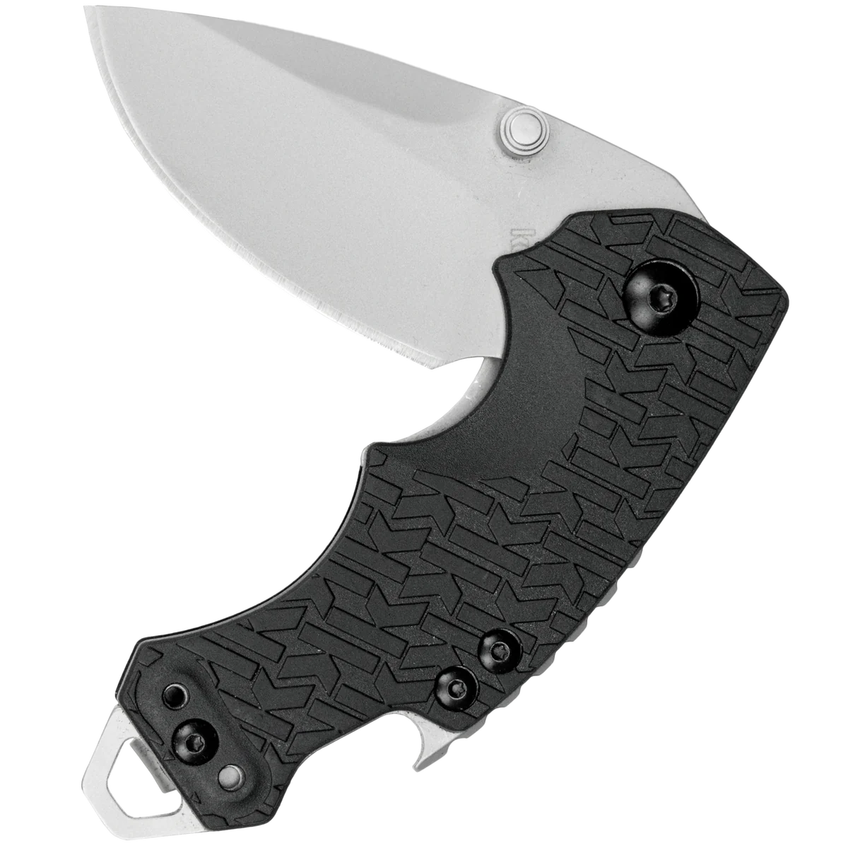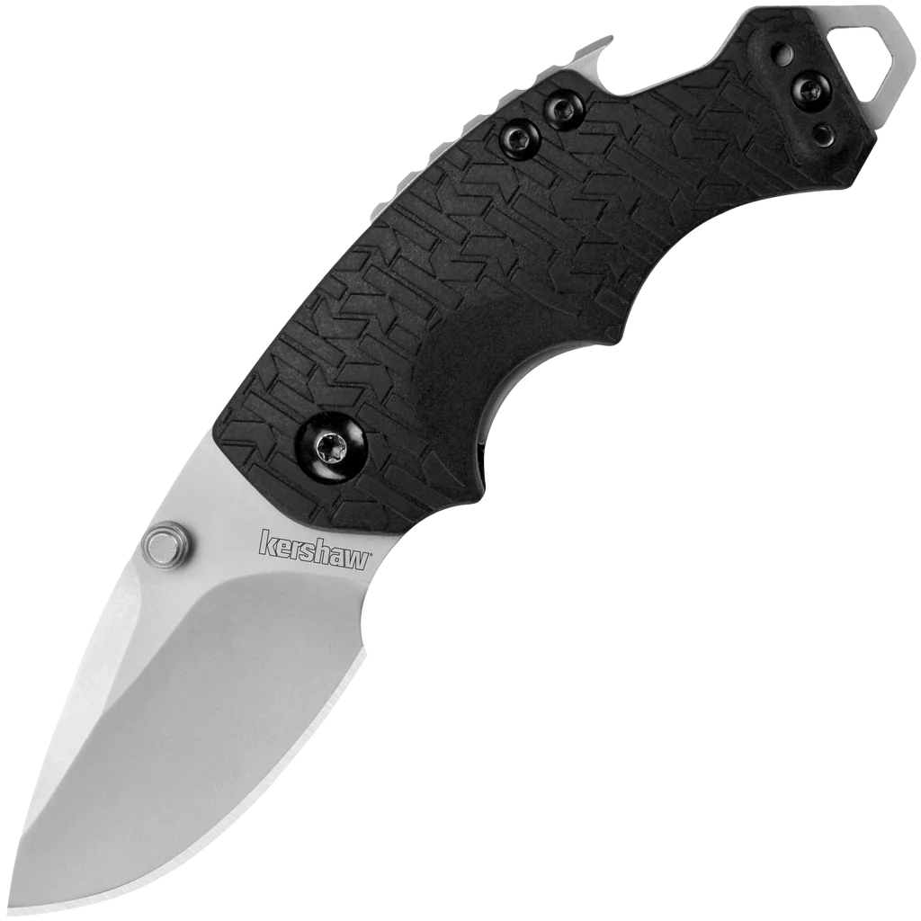 At first glance, you might wonder, "what's up with this little knife?" But that's only until you get your hands on it. Once you do, you'll see how nicely the finger contours fit your hand, how useful that stubby little blade is, and how Kershaw's new K-Texture™ on the handle provides an extra secure grip. But that's not all. There's also the flathead screwdriver at the butt of the knife that doubles as a lanyard attachment. And then there's the handy bottlecap lifter built into the back of the knife. Yeah, we thought you'd like that. The blade steel offers good ability to hold an edge, strength, and hardness. The K-Texture handle is exclusive to Kershaw. Look closely and you'll see that the texture is composed of a repeating pattern of the Kershaw logo "k." Sure, it looks cool, but the point is giving your fingers a little something extra to hang onto, which the Kershaw K-Texture on the Shuffle's handle does to perfection. A liner lock secures the Shuffle's blade open while you use it, but also lets you close the knife easily when its tasks are done. As a utility knife, a work knife, or just a great multi-function pocketknife, the manual opening Shuffle is a great choice.