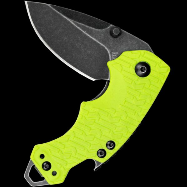 Everybody loves the Shuffle. Now here's one that won't get lost in the woods—or your truck box. The bright lime green handles make this Shuffle stand out. But the Shuffle is about more than just looks. It's a compact, versatile & tough multi-function tool. You'll like its compact size, manual opening, and discovering how useful that stubby little blade really is. You'll also like how nicely the finger contours fit your hand and how our K-Texture handle provides an extra secure grip. The Shuffle has some additional tricks up its sleeve, too. It has a flathead screwdriver at the butt of the knife, which doubles as a lanyard attachment, and a handy bottlecap lifter built into the back of the knife. The blade is made of made of a steel known for toughness and durability. The K-Texture handle—composed of a repeating pattern of the Kershaw logo "k"—is exclusive to Kershaw and enhances grip. A liner lock secures the Shuffle's blade open in use, but closes easily when its tasks are done. As a utility knife, a work knife, or just a great multi-function pocketknife, the Shuffle is the right choice.