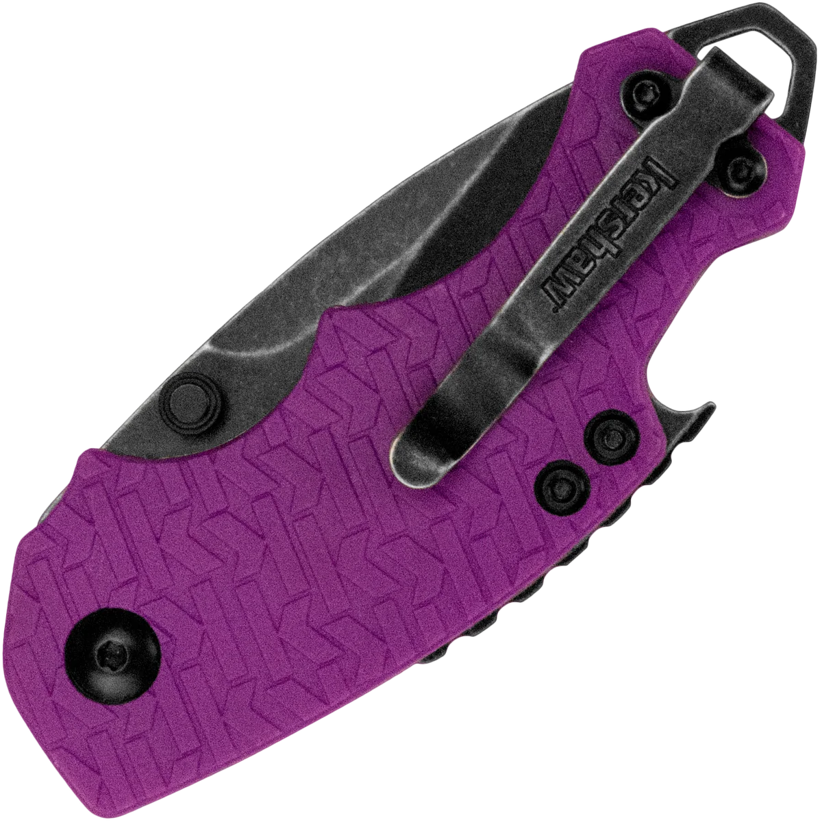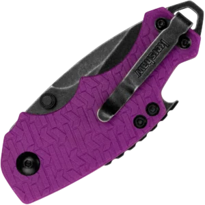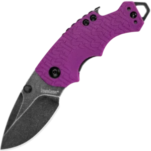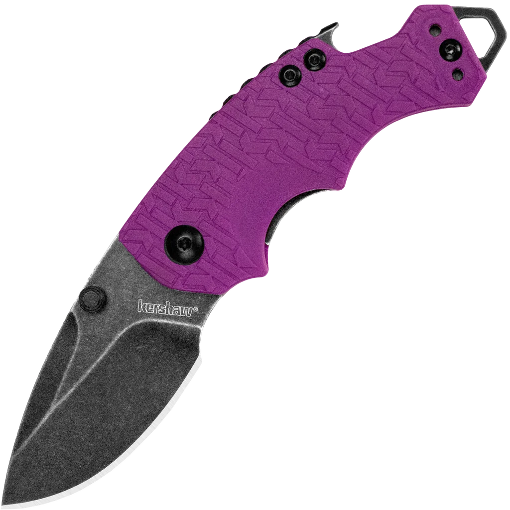 The Shuffle is a compact, versatile & tough multi-function tool. You'll like its compact size and discovering how useful that stubby little blade really is. You'll also like how nicely the finger contours fit your hand and how our K-Texture handle provides an extra secure grip. The manual opening Shuffle has some additional tricks up its sleeve, too. It has a flathead screwdriver at the butt of the knife, which doubles as a lanyard attachment, and a handy bottlecap lifter built into the back of the knife. The blade is made of made of a steel known for toughness and durability. The K-Texture handle—composed of a repeating pattern of the Kershaw logo "k"—is exclusive to Kershaw and enhances grip. A liner lock secures the Shuffle's blade open in use, but closes easily when its tasks are done. As a utility knife, a work knife, or just a great multi-function pocketknife, the Shuffle is the right choice. And if you're looking for an attention-getting knife, this new purple Shuffle will get the job done.