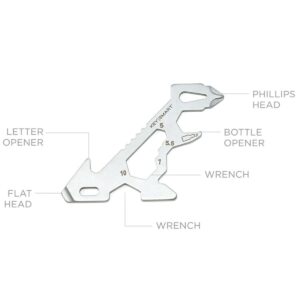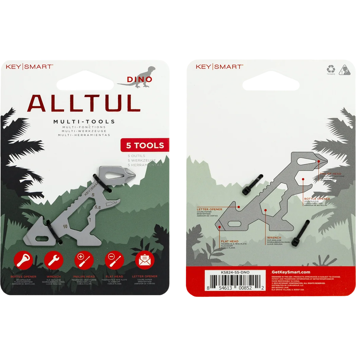 AllTuls are a WILD take on the traditional multi-tool. These sturdy multi-tools will take you from helpless – handy in dozens of scenarios! Made from stainless steel, AllTuls can handle whatever odd jobs are thrown your way. The animal-inspired shapes pack useful tools into a slim design and is small enough to fit in your wallet or on your keyring! It's like a toolbox on your keychain! AllTul makes you prepared to fix things on-the-go. It's the perfect toolbox because it's so lightweight, you'll forget you're carrying it… until the second you need it. The Dino is a small but handy multi-tool to attach to the key ring and contains a flat-head screwdriver, cross-head screwdriver, bottle opener, letter opener and a wrench number 5, 5,5, 7 and 10. A handy tool to take with you every day.