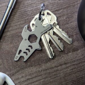 Have the right tool for the job on-hand with the KeySmart KS824-SS-SHK AllTul multifunction tool. This shark-shaped device is as slim as a credit card, but works as a bottle opener, Phillips-head screwdriver, and more to become 6 tools in 1. It's sturdy, lightweight, and fits into a wallet or hooks onto a keyring, so it's always there when you need it. Multi-function tool works as a bottle opener, Phillips-head screwdriver, and more to work as 6 tools in 1 Lightweight, slim tool slides into a wallet or hooks on to a keychain for easy portability Laser-engraved tool labels (on some parts) make it easy to see what a section of the tool does at a glance Stainless steel construction is hard-wearing and scratch-resistant