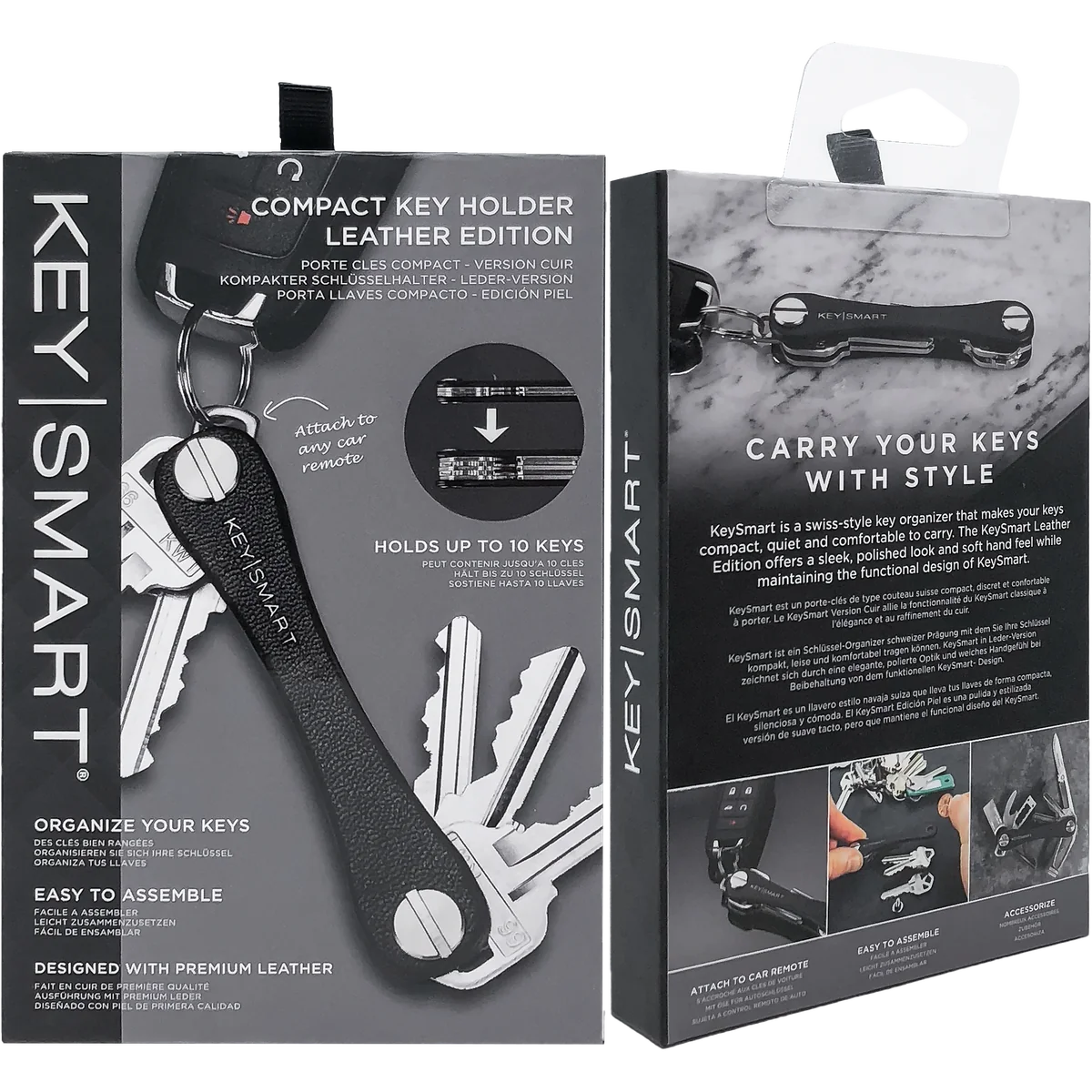 • Efficiently organize up to 10 keys at once with the KeySmart Leather Key Holder. Its luxurious faux leather design offers a smooth feel and an attractive appearance.