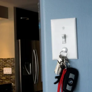 Hang your keys from this modern magnetic key rack, doing double duty with your light switch