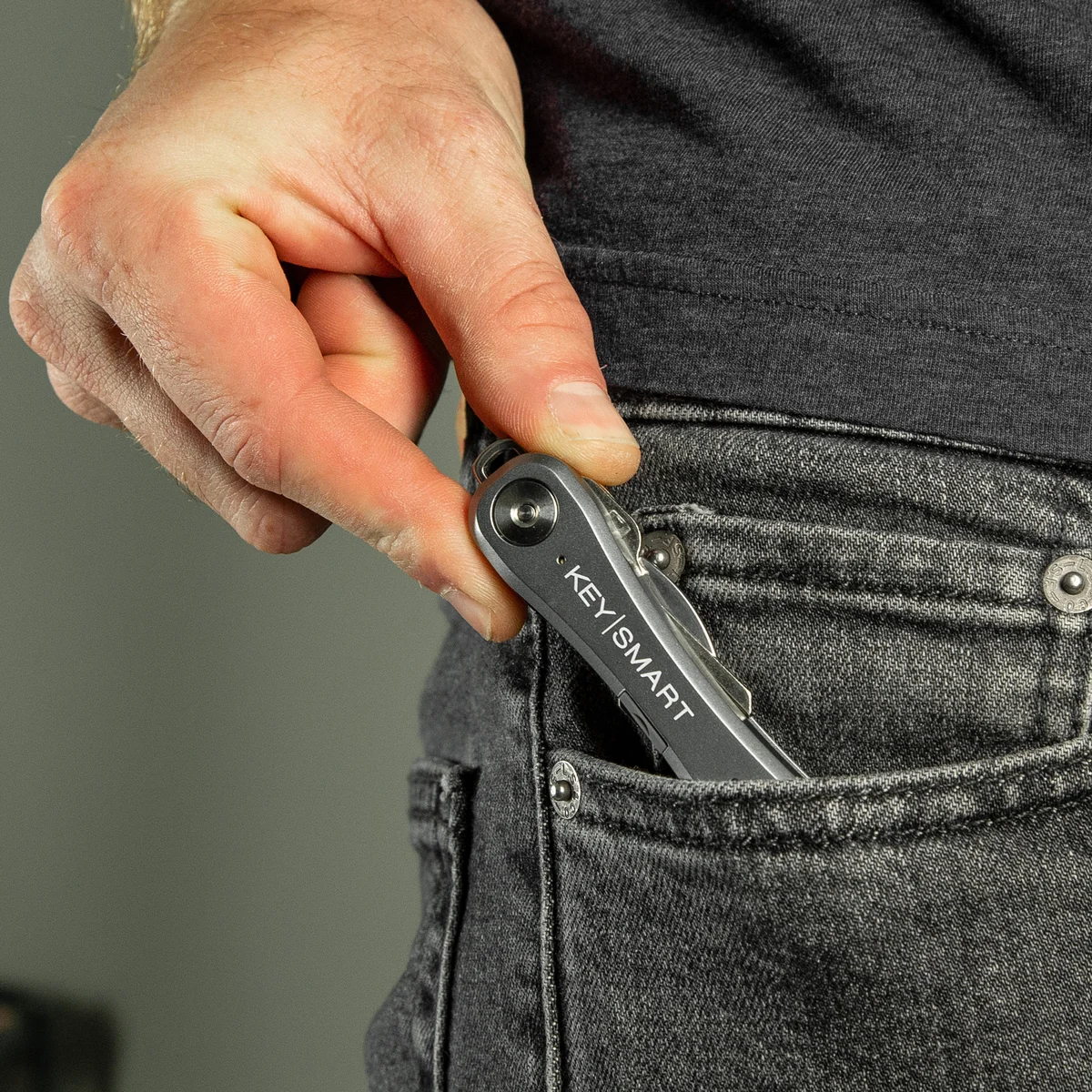 NEVER LOSE YOUR KEYS AGAIN! The KeySmart Compact Pro Smart Location is the ultimate key organiser that gives you a better way to organise and carry your keys giving you peace of mind knowing that your keys are never lost. The KeySmart Pro is small, lightweight and compact, getting rid of all the bulk from multiple keys as it stores up to 10 in an innovative design. This makes all your keys comfortable to carry in your pocket, organised and easy to take anywhere! To load your keys into the KeySmart, simply place the back plate on the table with the posts facing up, stack your keys on the post, put the top plate on, and tighten with a coin. There is no need for fancy tools – just pocket change. The KeySmart Compact Pro allows you to track down and find your keys and phone! By downloading the free Tile App you can locate lost keys, make your keys ring so that you can find them quicker around the house and now with the added bonus feature of the KeySmart Pro ringing your phone even when its on silent ensuring you can find your phone if lost- All you do is press the Tile Button!