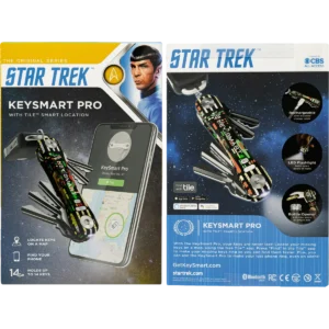 NEVER LOSE YOUR KEYS AGAIN! The KeySmart Compact Pro Smart Location is the ultimate key organiser that gives you a better way to organise and carry your keys giving you peace of mind knowing that your keys are never lost. The KeySmart Pro is small, lightweight and compact, getting rid of all the bulk from multiple keys as it stores up to 10 in an innovative design. This makes all your keys comfortable to carry in your pocket, organised and easy to take anywhere! The KeySmart Compact Pro allows you to track down and find your keys and phone! By downloading the free Tile App you can locate lost keys, make your keys ring so that you can find them quicker around the house and now with the added bonus feature of the KeySmart Pro ringing your phone even when its on silent ensuring you can find your phone if lost- All you do is press the Tile Button! This special edition has a design inspired by Officer Spock. The pattern is a chart of the Officer's Operational Priority Allocations and Protected Distribution Reserve Supplies, and an imprint stating that your keys are "Property of the U.S.S. Enterprise NCC-1701"