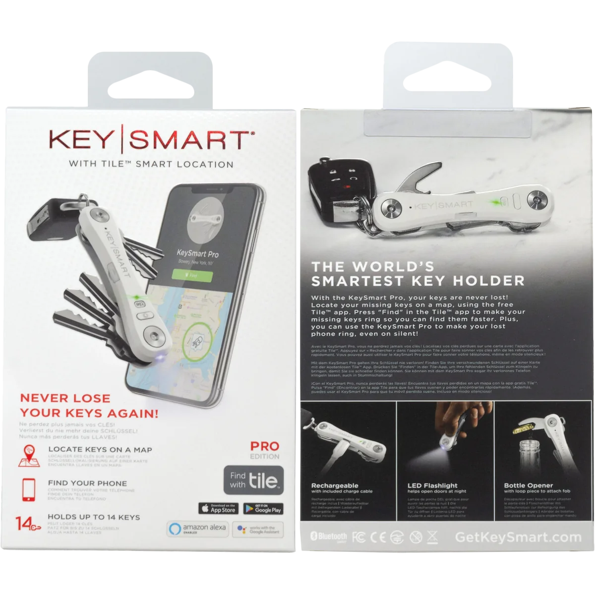 NEVER LOSE YOUR KEYS AGAIN! The KeySmart Compact Pro Smart Location is the ultimate key organiser that gives you a better way to organise and carry your keys giving you peace of mind knowing that your keys are never lost. The KeySmart Pro is small, lightweight and compact, getting rid of all the bulk from multiple keys as it stores up to 10 in an innovative design. This makes all your keys comfortable to carry in your pocket, organised and easy to take anywhere! To load your keys into the KeySmart, simply place the back plate on the table with the posts facing up, stack your keys on the post, put the top plate on, and tighten with a coin. There is no need for fancy tools – just pocket change. The KeySmart Compact Pro allows you to track down and find your keys and phone! By downloading the free Tile App you can locate lost keys, make your keys ring so that you can find them quicker around the house and now with the added bonus feature of the KeySmart Pro ringing your phone even when its on silent ensuring you can find your phone if lost- All you do is press the Tile Button!