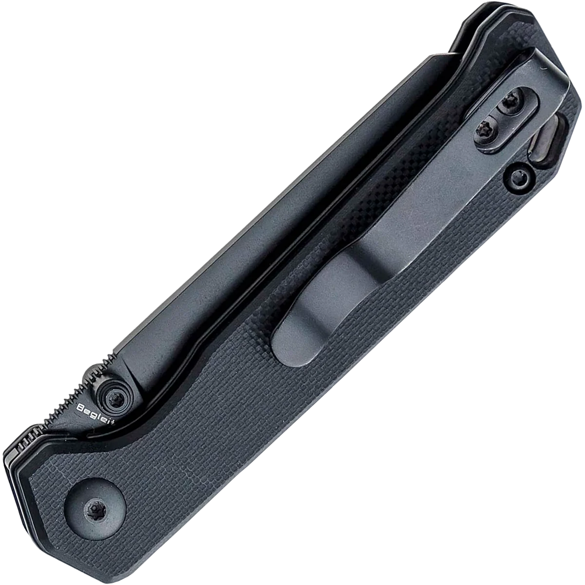 The Kizer Begleiter Mini is a practical and affordable pocket knife. The blade is made from N690 steel. This is a stainless type of steel that is easy to sharpen. In terms of design the blade is a combination of a reverse tanto and a sheepsfoot. This means that the blade has a very sharp tip. Great when opening boxes, for instance. The knife is lightweight and thanks to the deep pocket clip it can be safely carried. You open the Begleiter with the thumb studs. It opens smoothly and when opened the blade is kept in place by a solid liner lock. The black coated steel liners between the handles add solidity to the frame. Which means you can always rely on your knife, even with heavier use.