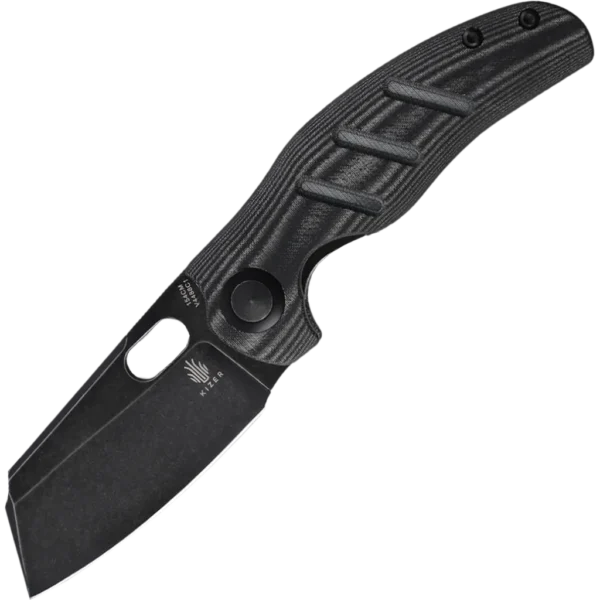 The Kizer C01C Vanguard pocket knife offers a more affordable version of the cleaver design from Chris Conaway of Sheepdog Knives. The blade shape is great for most everyday knife tasks. The handle is made of Black Micarta. Textured Micarta handle scales are durable and grippy. It also provides non-slip even when your hand is wet. The Stonewashed blade deploys effortlessly on a smooth ball bearing pivot, and locks up solid. This knife feels solid in the hand and is ready for any task you throw at it. Well built, heavy duty and built for use, This knife offers a remarkable combination of tactical and daily functionality wrapped up in a refined, stylish finish