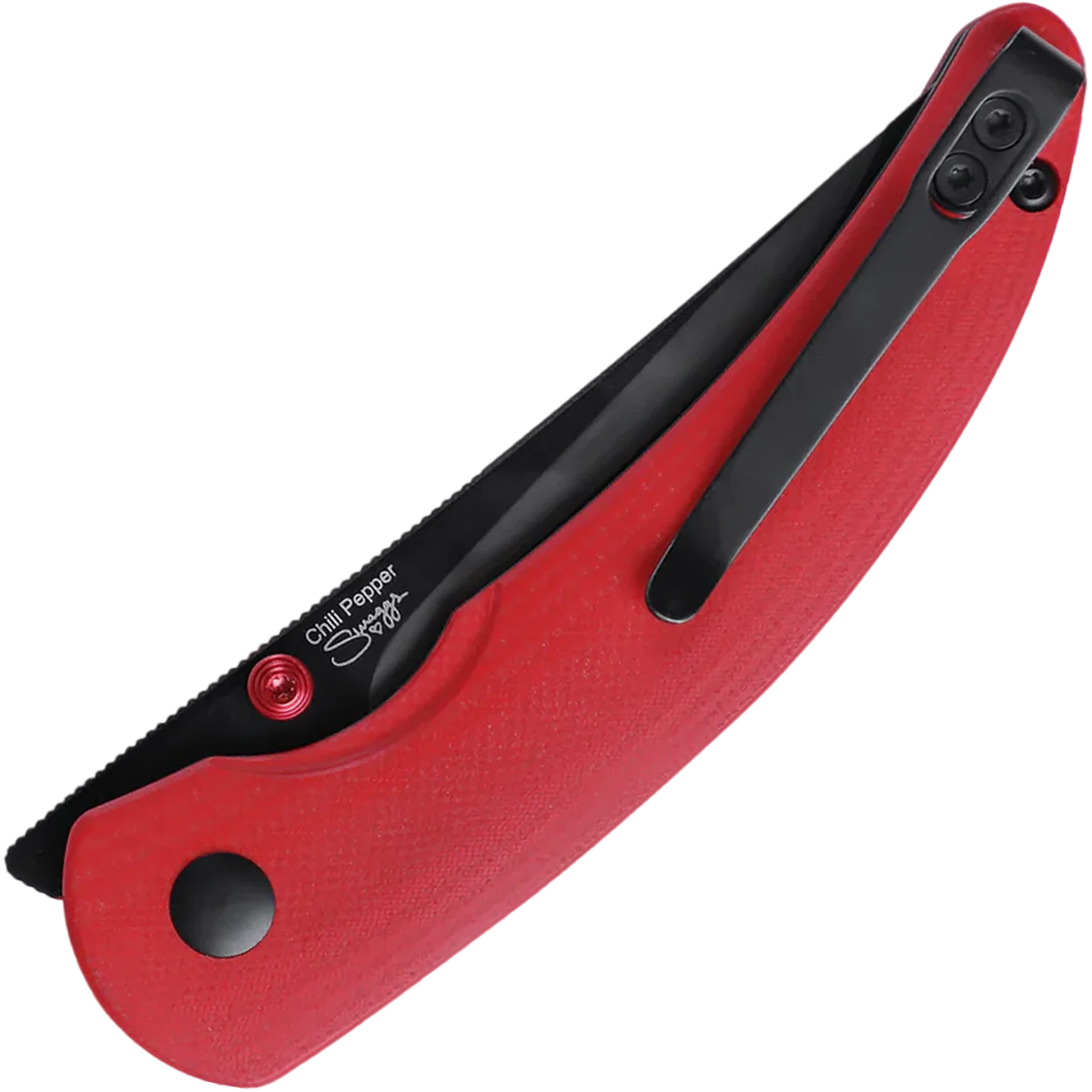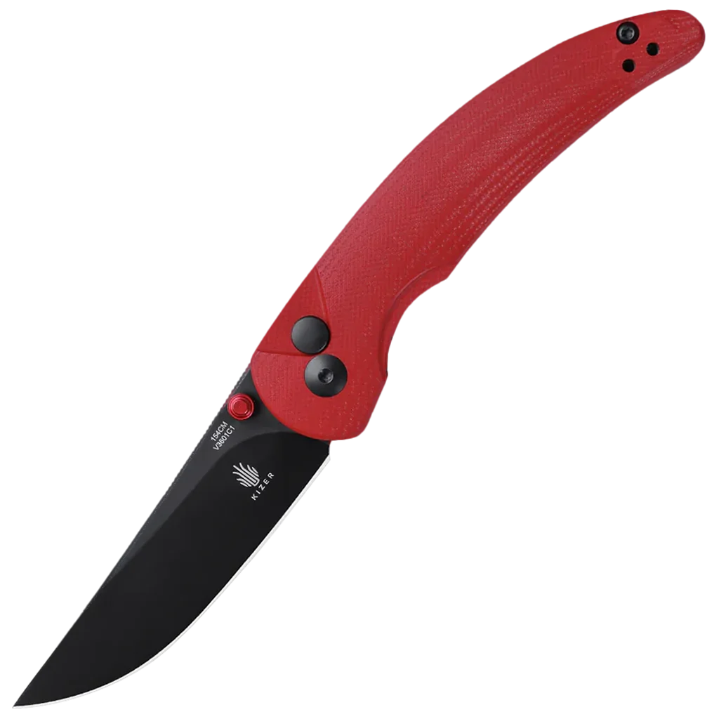 The Kizer Vanguard Chili Pepper, designed by Swaggs from Sharp and Pointy Swaggs, is an elegant folder with fire action and a pepper-shaped profile. The curved handle is made from G-10, perfectly contoured to fit in the palm of your hand. Chili red G-10 handle with a minimalist finger groove. The drop point blade balances the design out perfectly, featuring 154CM high carbon stainless steel for excellent corrosion resistance and edge retention.