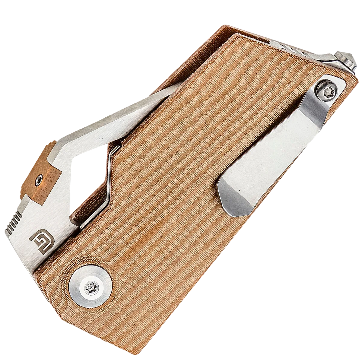 The Kizer Cyber Blade is a futuristic little EDC with a lot going for it. From the sharp tanto blade to the angular Micarta frame, stylish thumb stud, and glass breaker – this knife is packed with features we adore. The straight edge at the tip is great for most scraping tasks, and the blade overall is great for cutting through tough boxes or cables. Because of the high handle you always have an amazing grip over the knife. Despite its smaller size.