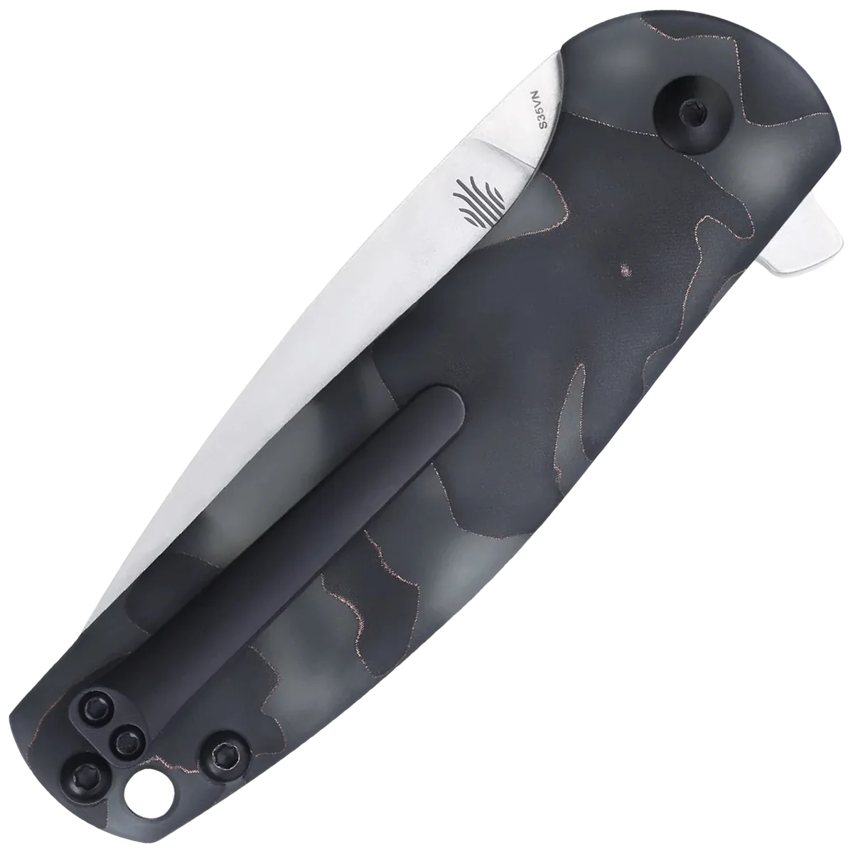 The Ki3471 Gemini flipper by Kizer Cutlery is a collaborative project between Kizer and custom knifemaker Ray Laconico of LVKnives, based off his awesome Jasmine flipper. It features a fully flat ground 3.125" stonewashed S35VN blade with a gorgeous drop point shape. As with all Kizer knives, the bearing pivot system allows for smooth blade opening. The Raffir Noble handle is slim and definitely one of the most comfortable we've ever held. Every surface and every edge is contoured for comfort and gives the knife a very high-class feel and look unlike anything else. It features a lockbar overtravel prevention mechanism, a replaceable steel insert, and comes with a tip-up carry, milled titanium pocket clip. Its Raffir Noble handle is made of mixed gum and the resin is transparent (no polishing). Compared with the same material on the market, this handle will be matte, more advanced, and originally transparent, without a plastic feeling.